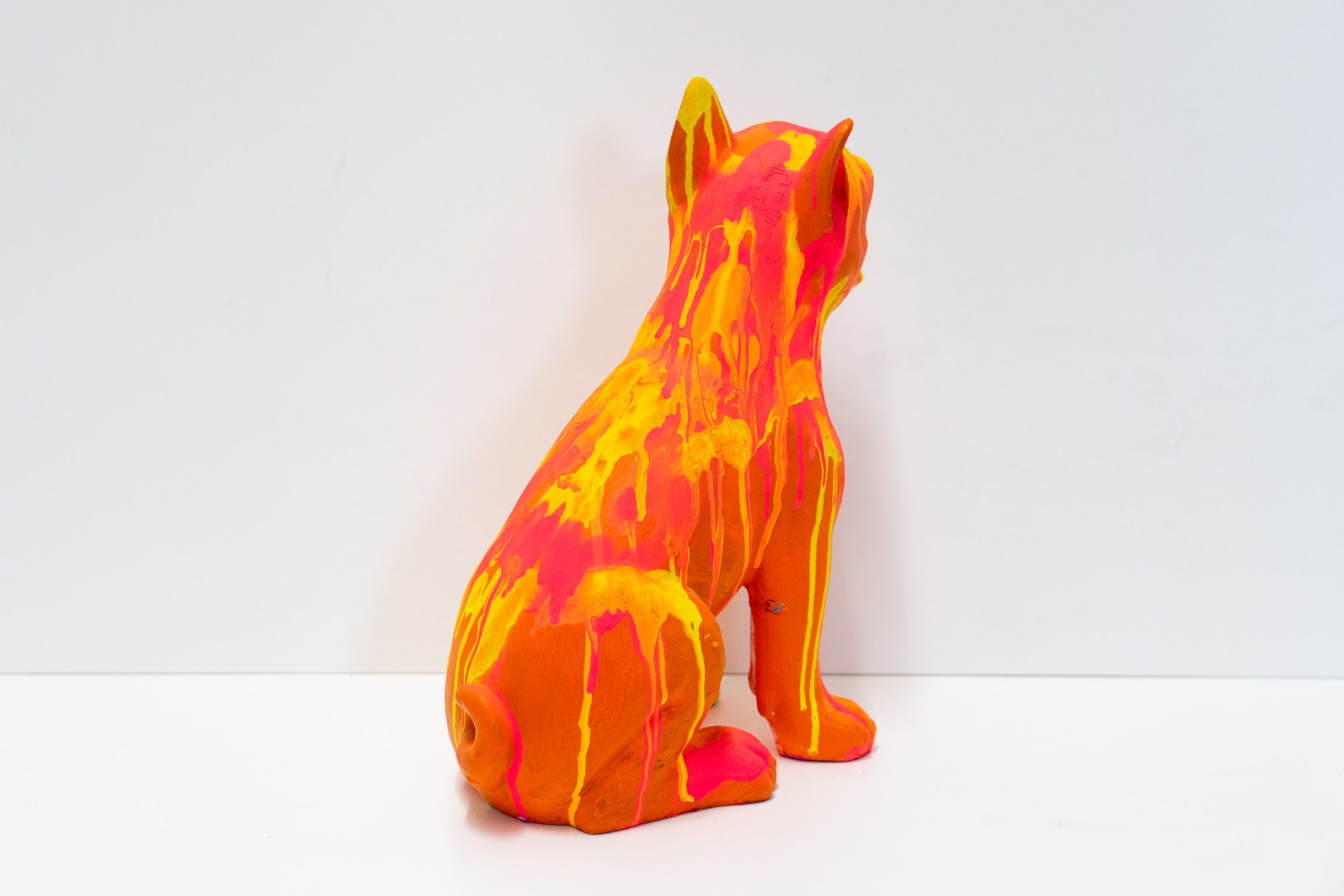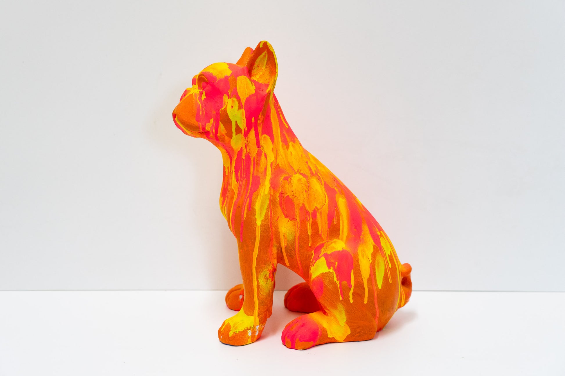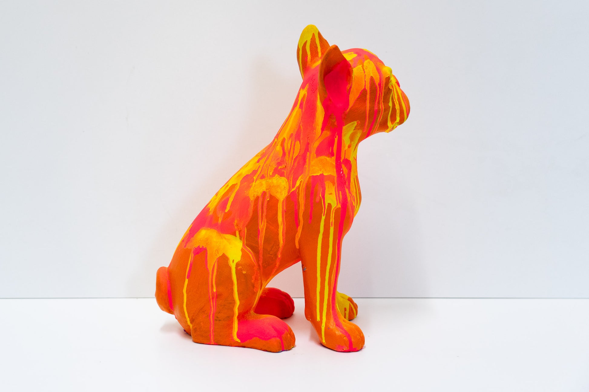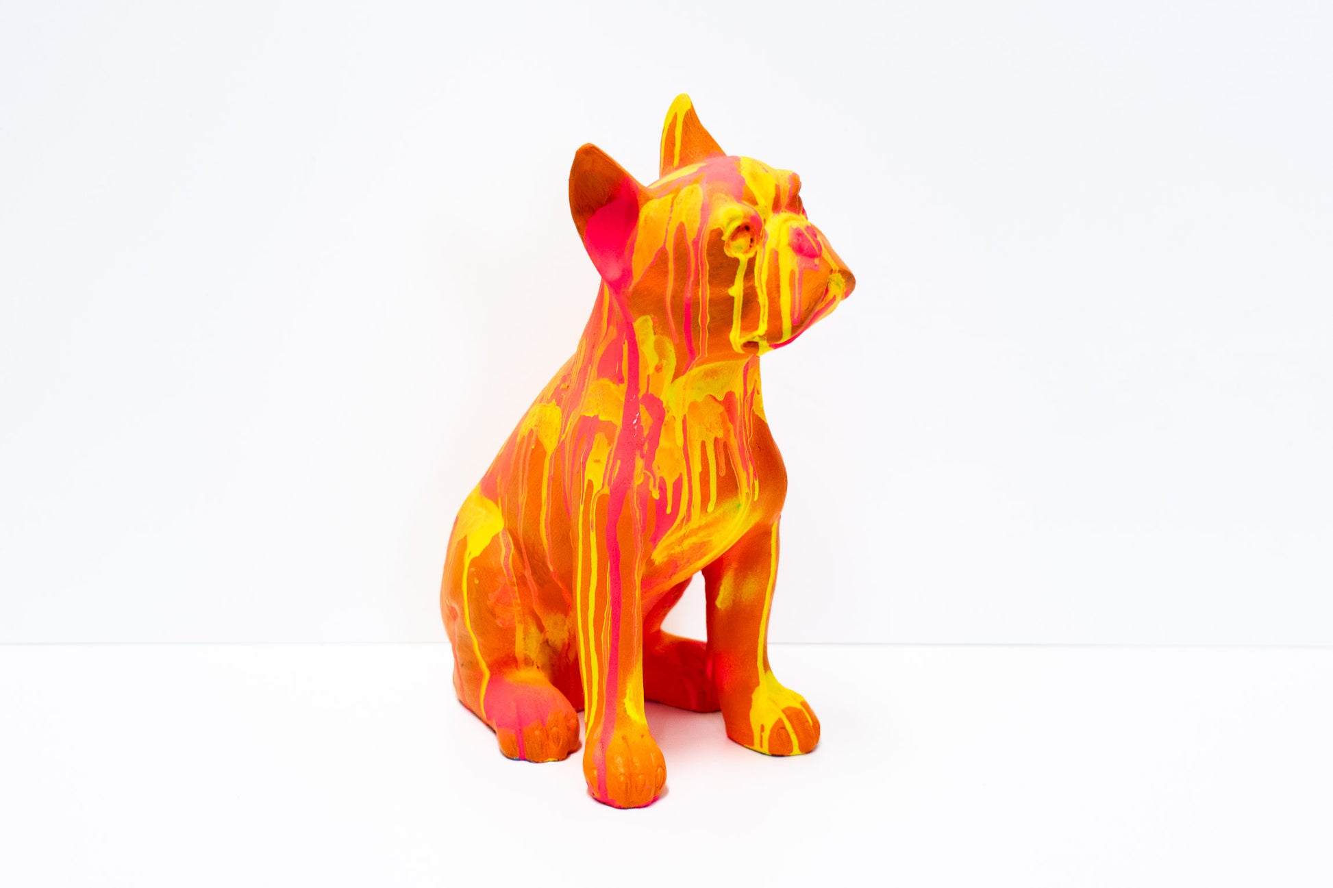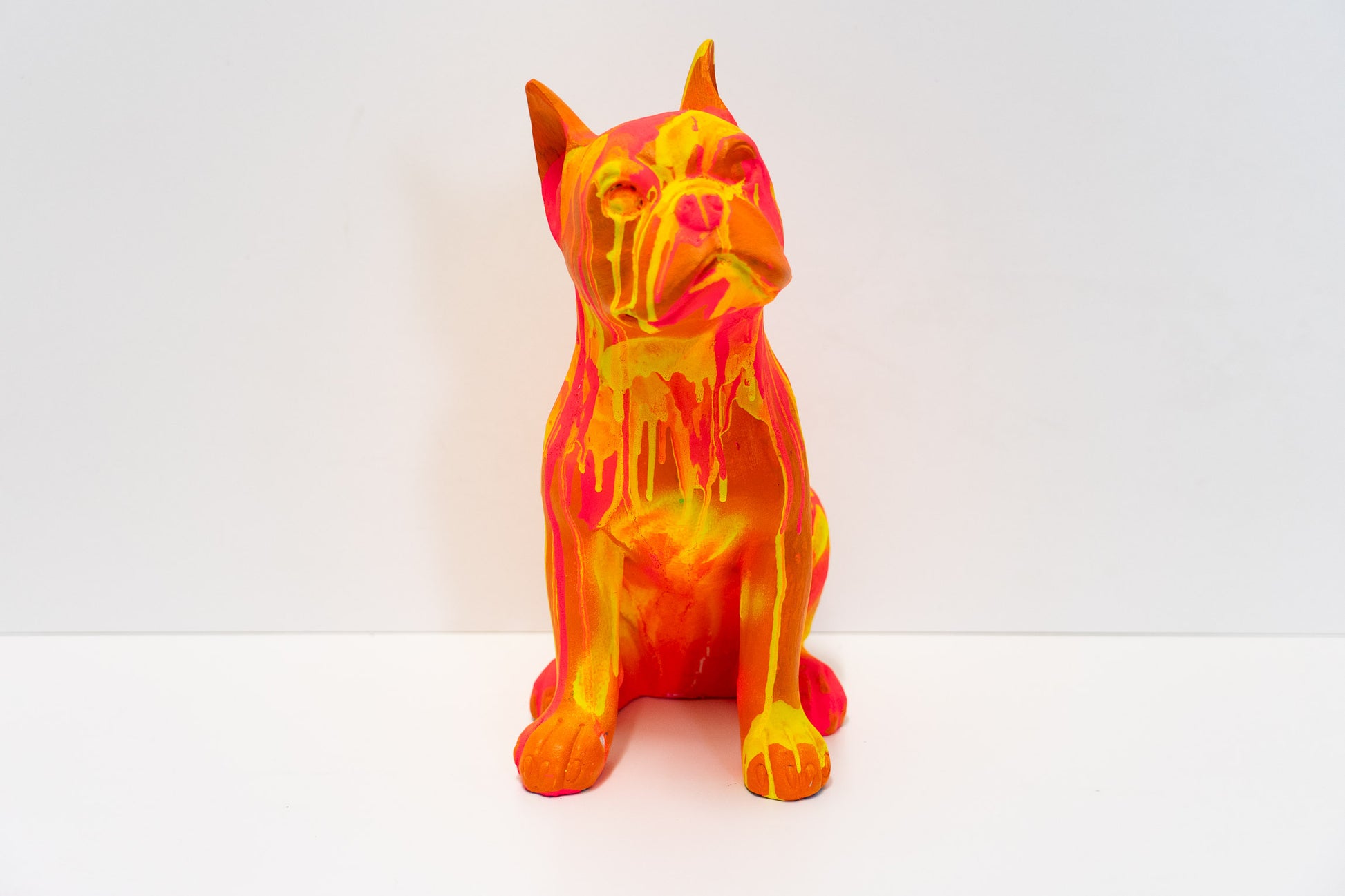 Diese Bulldogge bringt Farbe in ihr Zuhause. Die Skulptur wurde von Hand in der Schweiz bemalt und ist ein Einzelstück. Die Farbgebung entstand mit Molotow Künstler-Sprühfarbe und Acrylfarbe. Sie haben damit ein Objekt, dass niemand anderes besitzt.