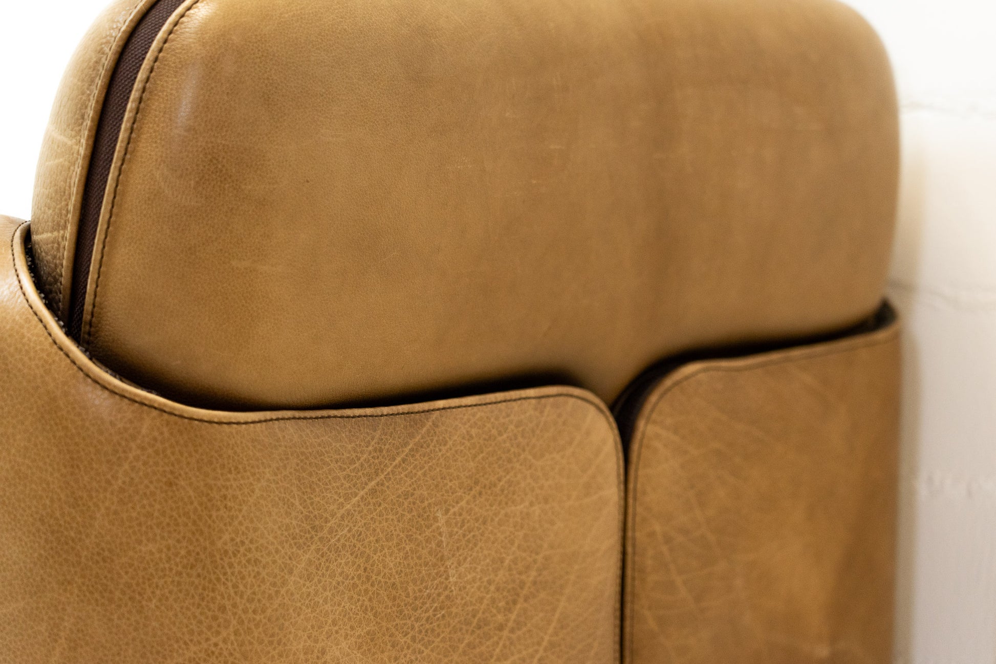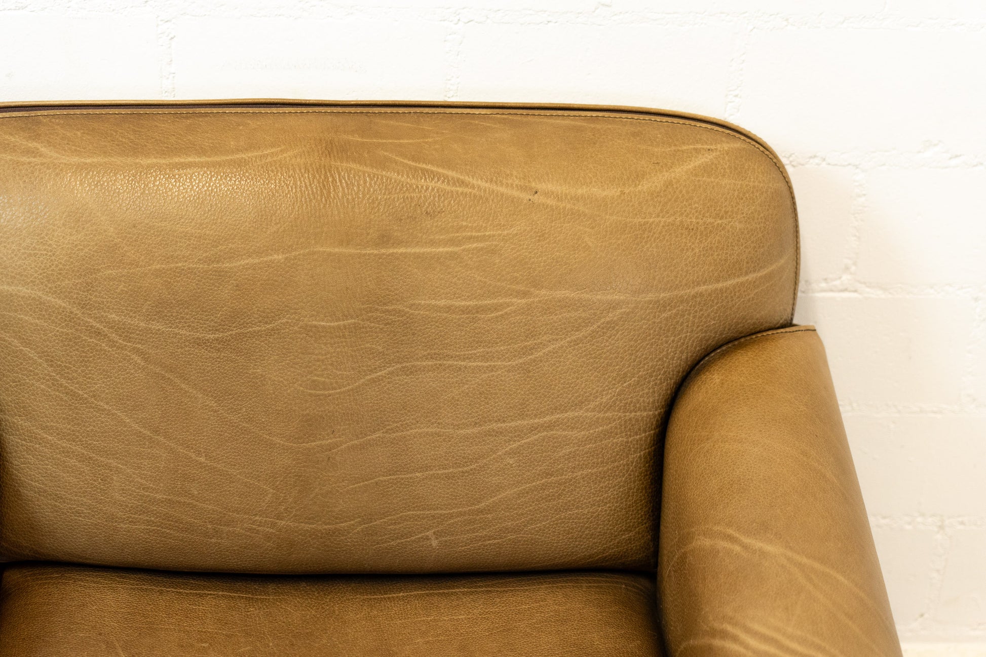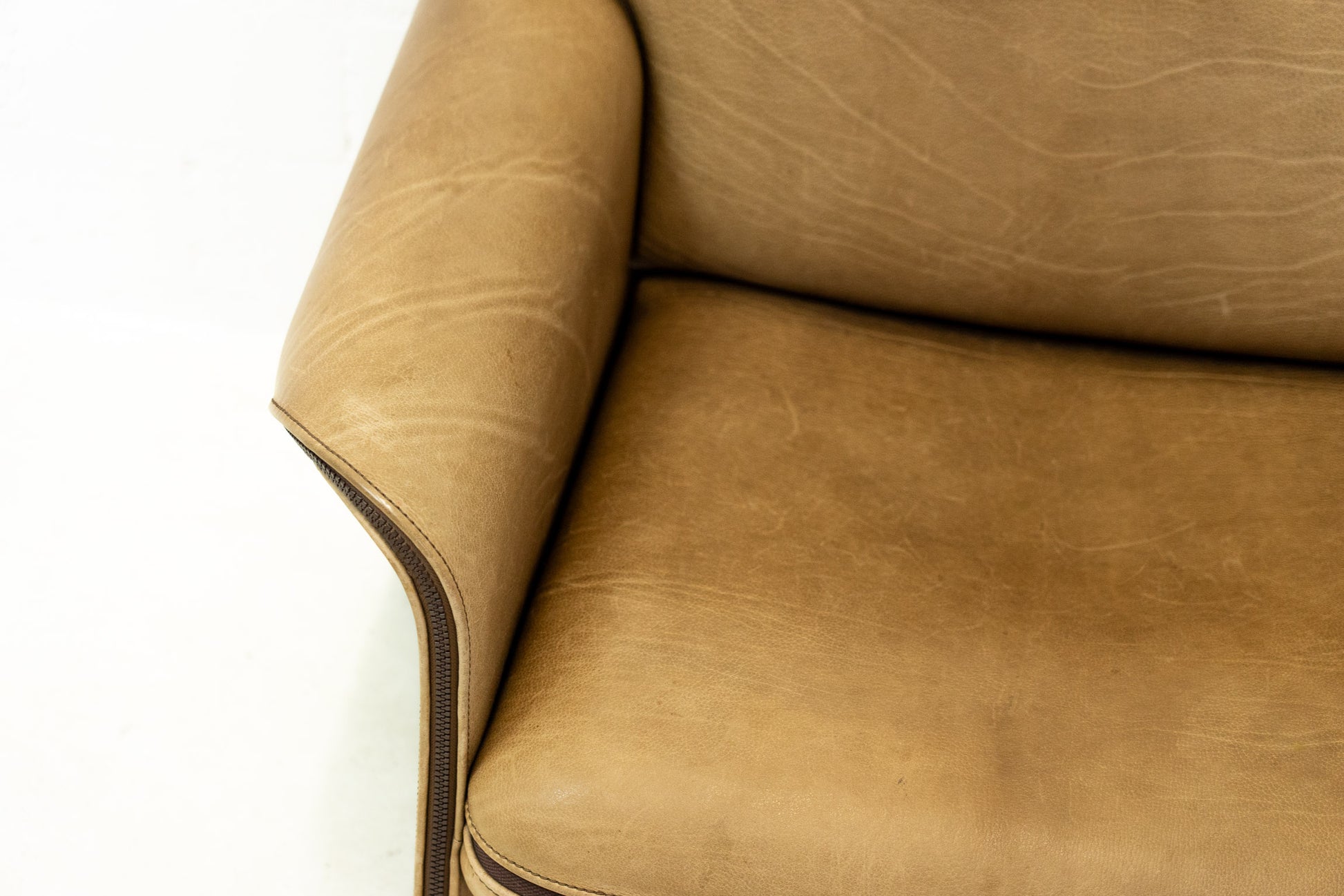 Der Bezug ist Leder, welches dem Alter entsprechend schön erhalten ist. Es hat Gebrauchsspuren in Form von Kratzern, Abschürfungen, Farbänderungen durch den Lichteinfall und Verfärbungen. Wir haben davon Detailfotos gemacht. Der Sitzkomfort ist nach wie vor super. Der Sessel ist filigran gebaut und wirkt durch die speziellen Armlehnen leicht. Der DS-125 wurde von Gerd Lange entworfen. Dieses Modell wird nicht mehr bei De Sede produziert. Sie können hier also ein spezielles Design-Objekt mit Seltenheitswert kaufen. De Sede Möbel werden von Hand in der Schweiz gefertigt. Ein echtes Qualitätsprodukt.