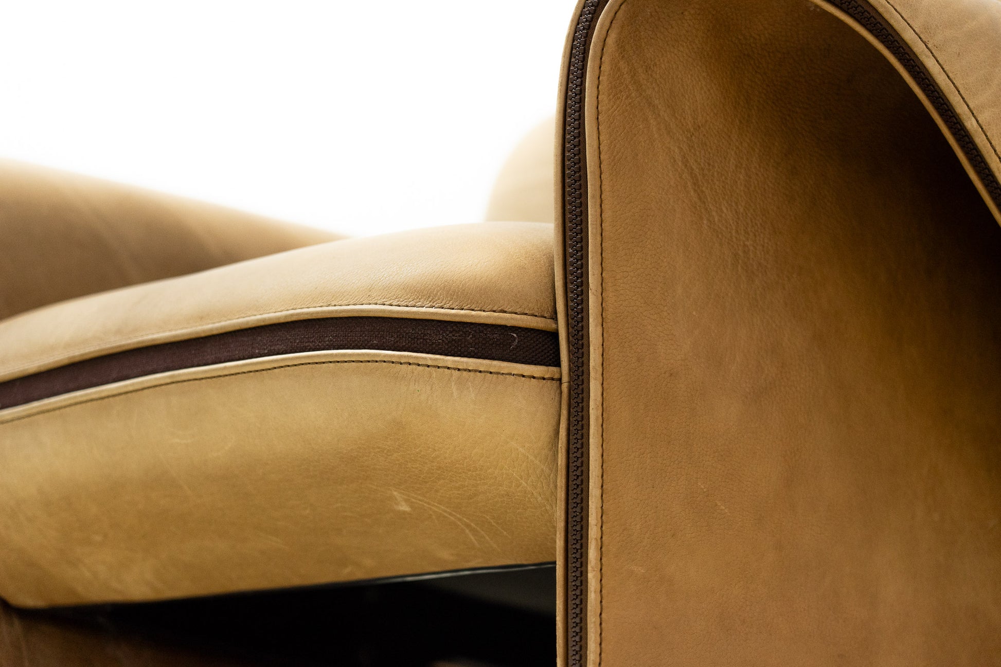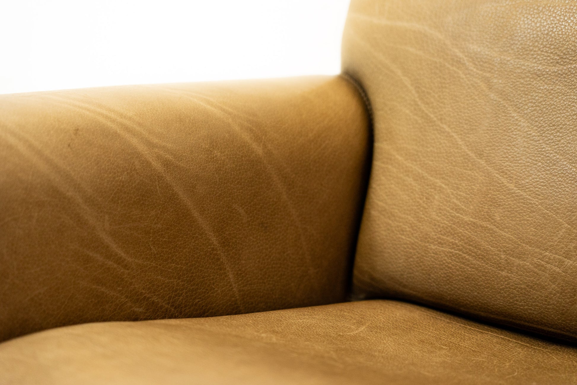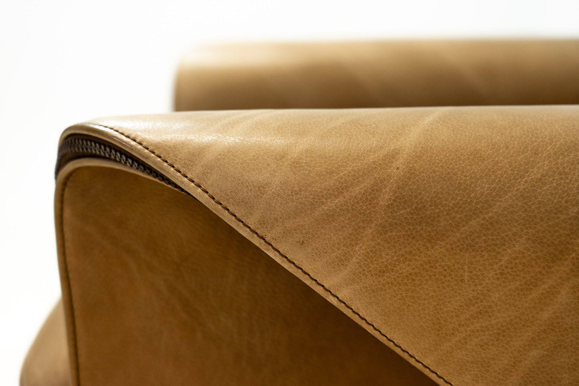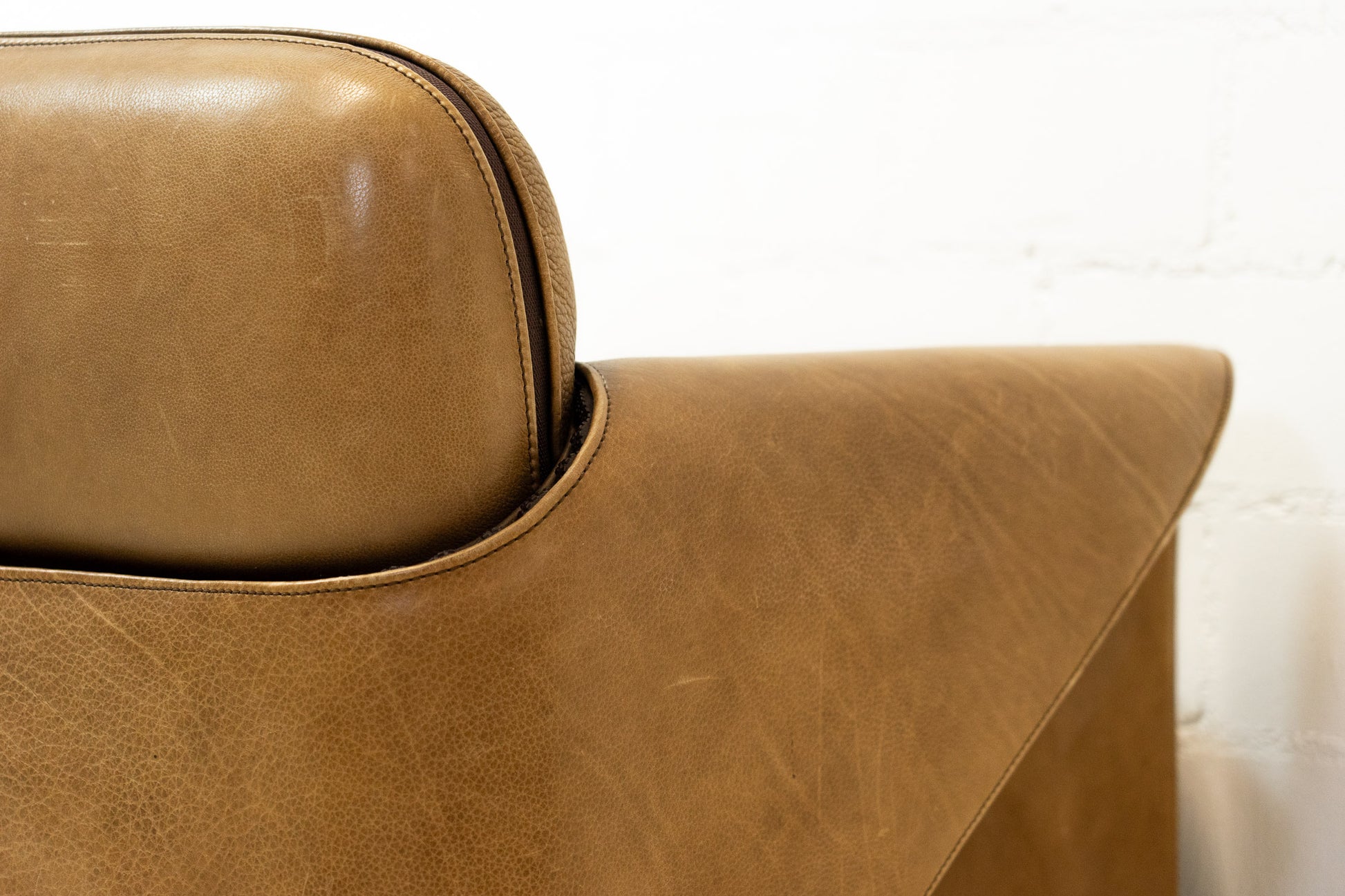 Der Bezug ist Leder, welches dem Alter entsprechend schön erhalten ist. Es hat Gebrauchsspuren in Form von Kratzern, Abschürfungen, Farbänderungen durch den Lichteinfall und Verfärbungen. Wir haben davon Detailfotos gemacht. Der Sitzkomfort ist nach wie vor super. Der Sessel ist filigran gebaut und wirkt durch die speziellen Armlehnen leicht. Der DS-125 wurde von Gerd Lange entworfen. Dieses Modell wird nicht mehr bei De Sede produziert. Sie können hier also ein spezielles Design-Objekt mit Seltenheitswert kaufen. De Sede Möbel werden von Hand in der Schweiz gefertigt. Ein echtes Qualitätsprodukt.