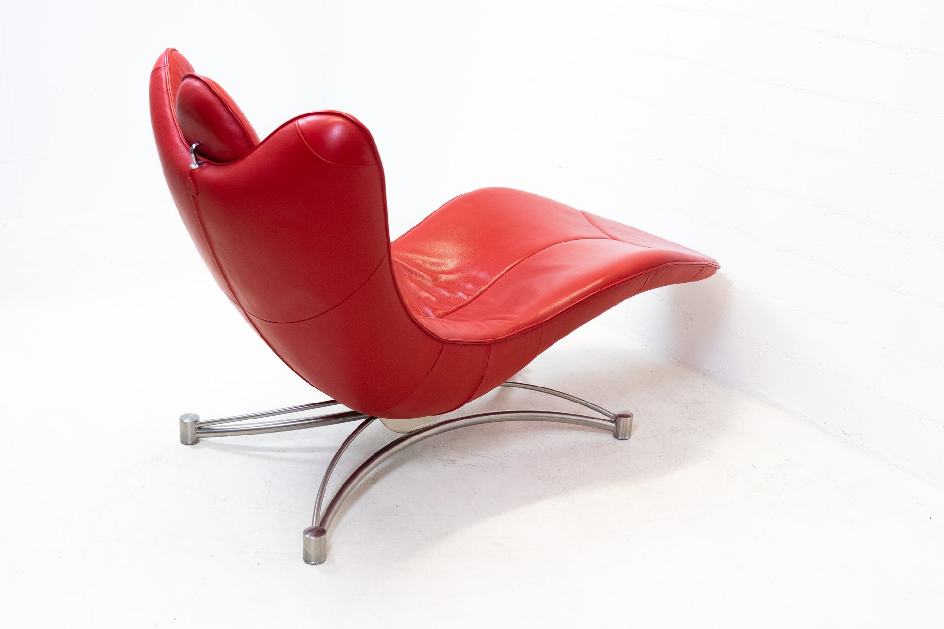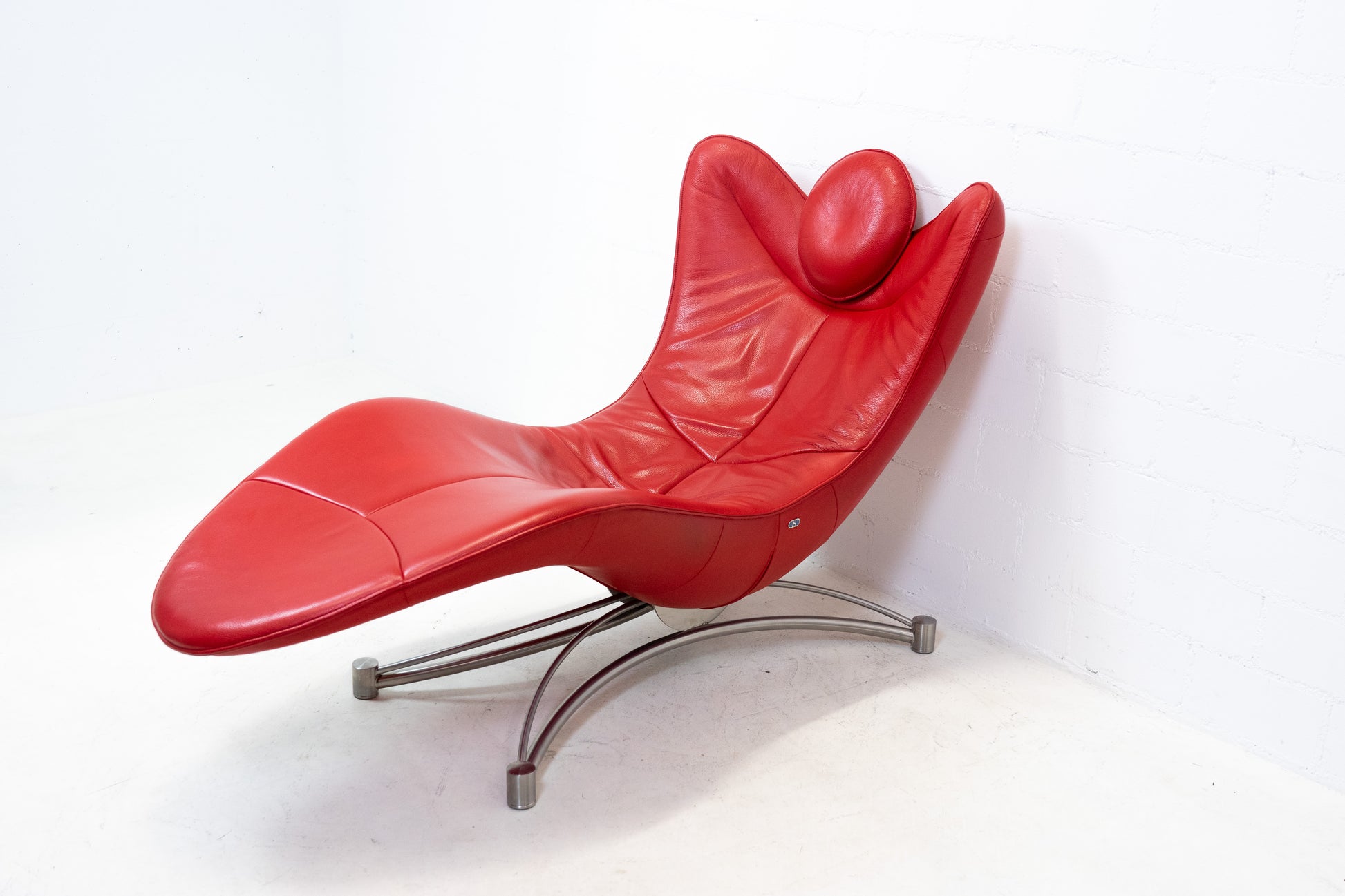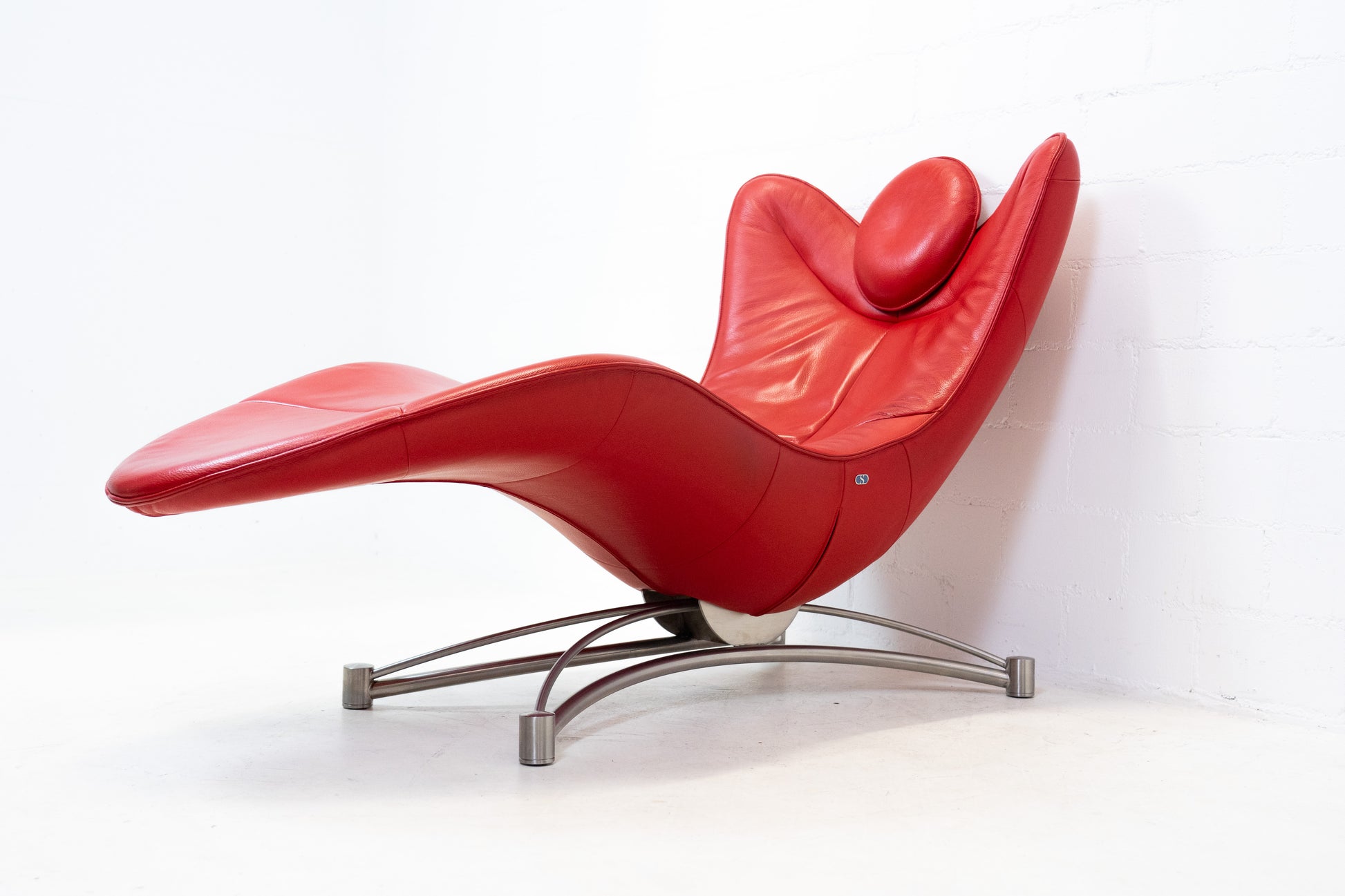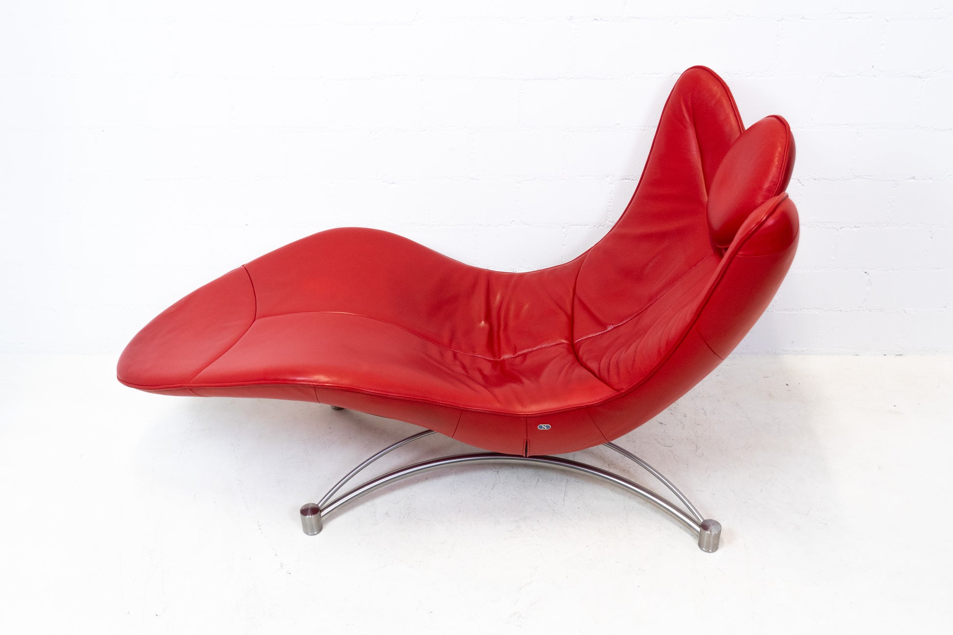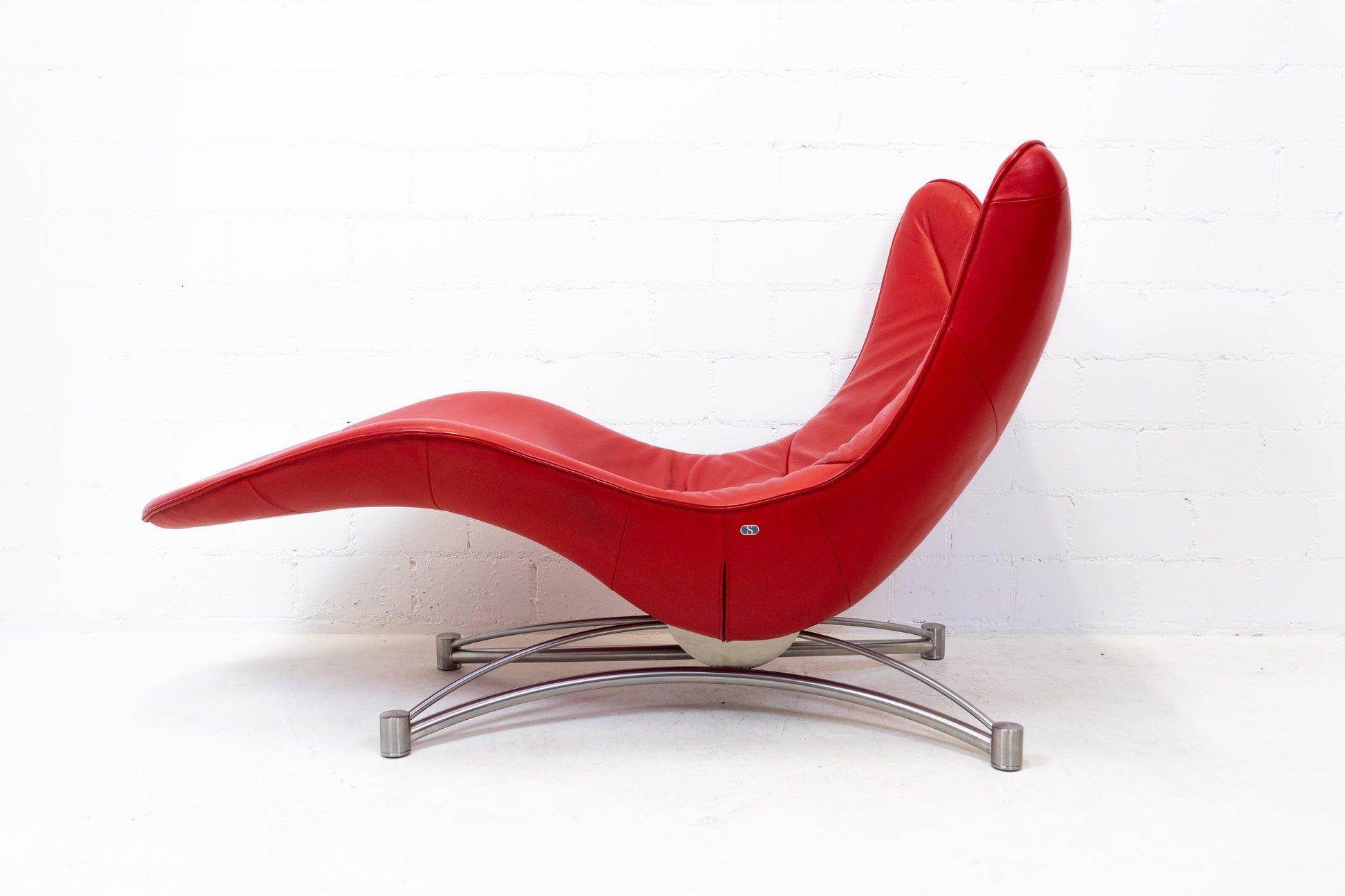 Der Bezug ist Leder, welches sehr gut / fast neuwertig erhalten ist. Es hat nur geringe Gebrauchsspuren in Form von Kratzern und Abschürfungen. Der Liegekomfort ist nach wie vor sehr gut. Die Kopfstütze der Liege lässt sich verstellen. Das Design stammt von Jane Worthington und die Liege wurde von De Sede produziert.