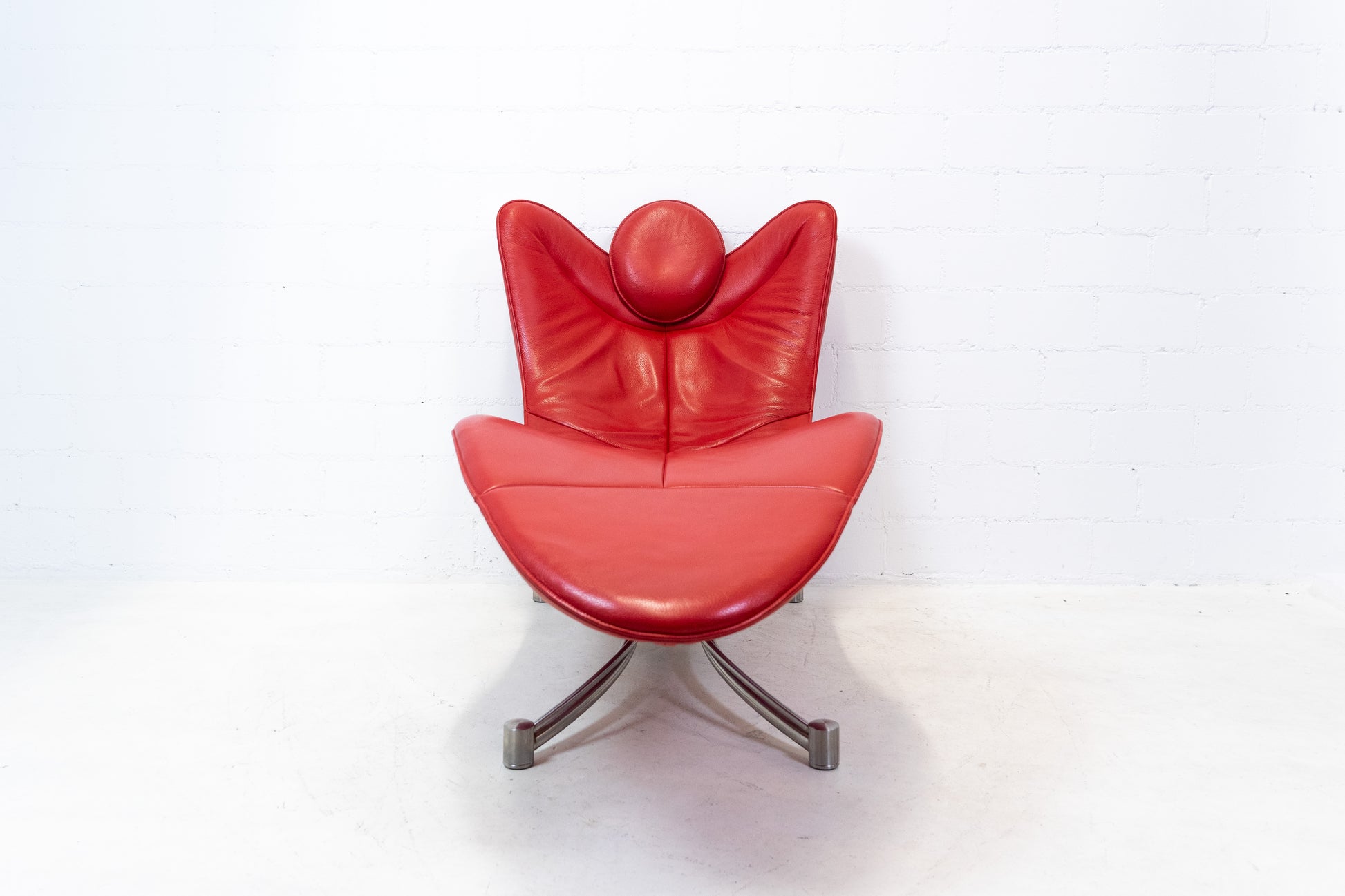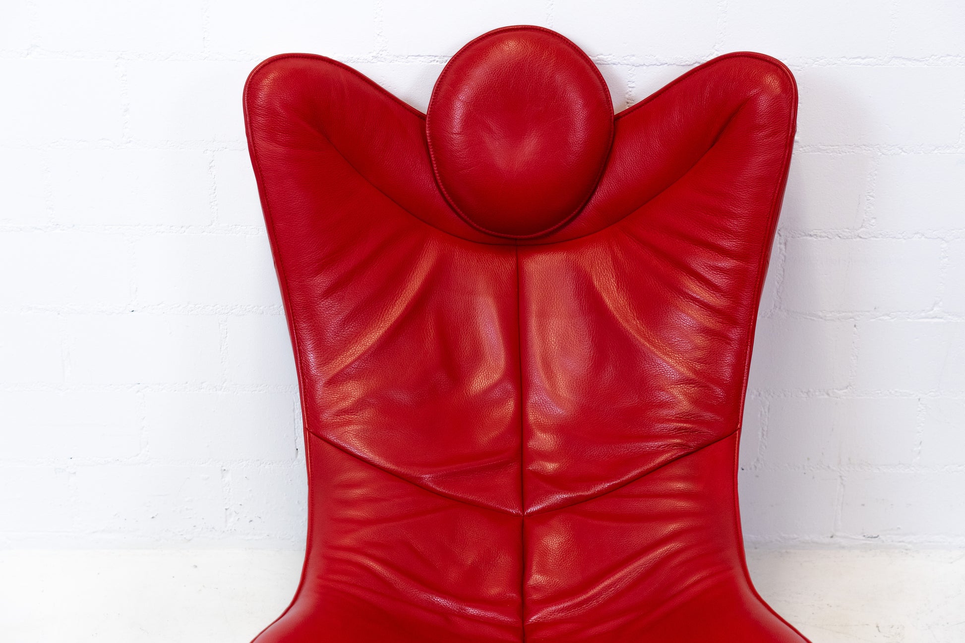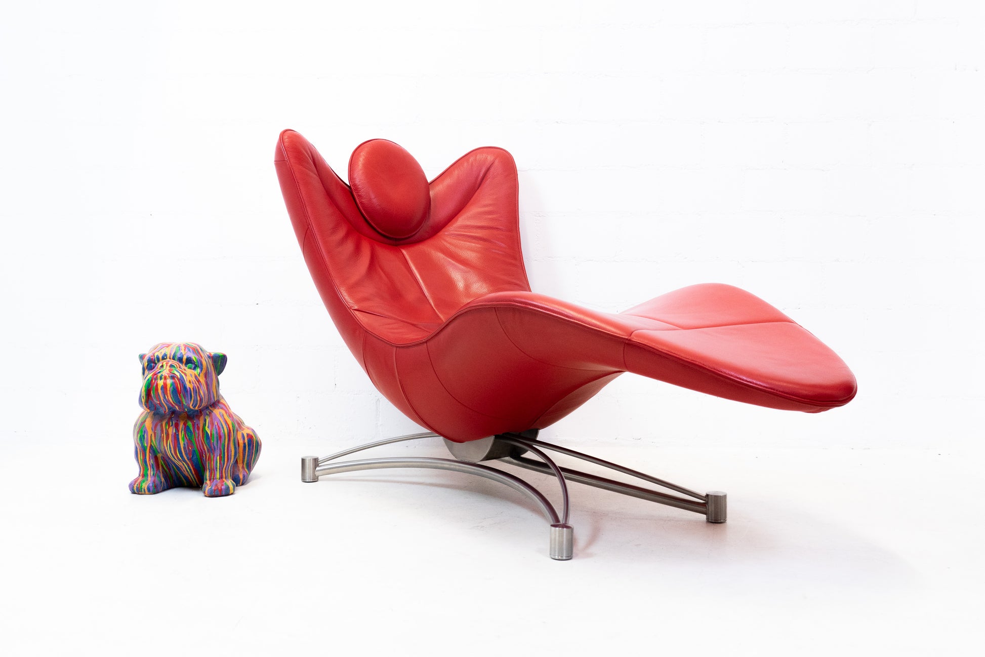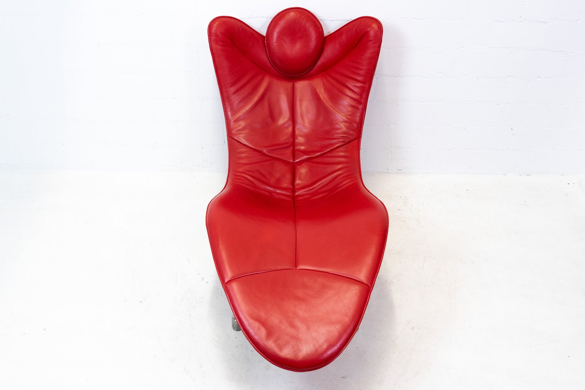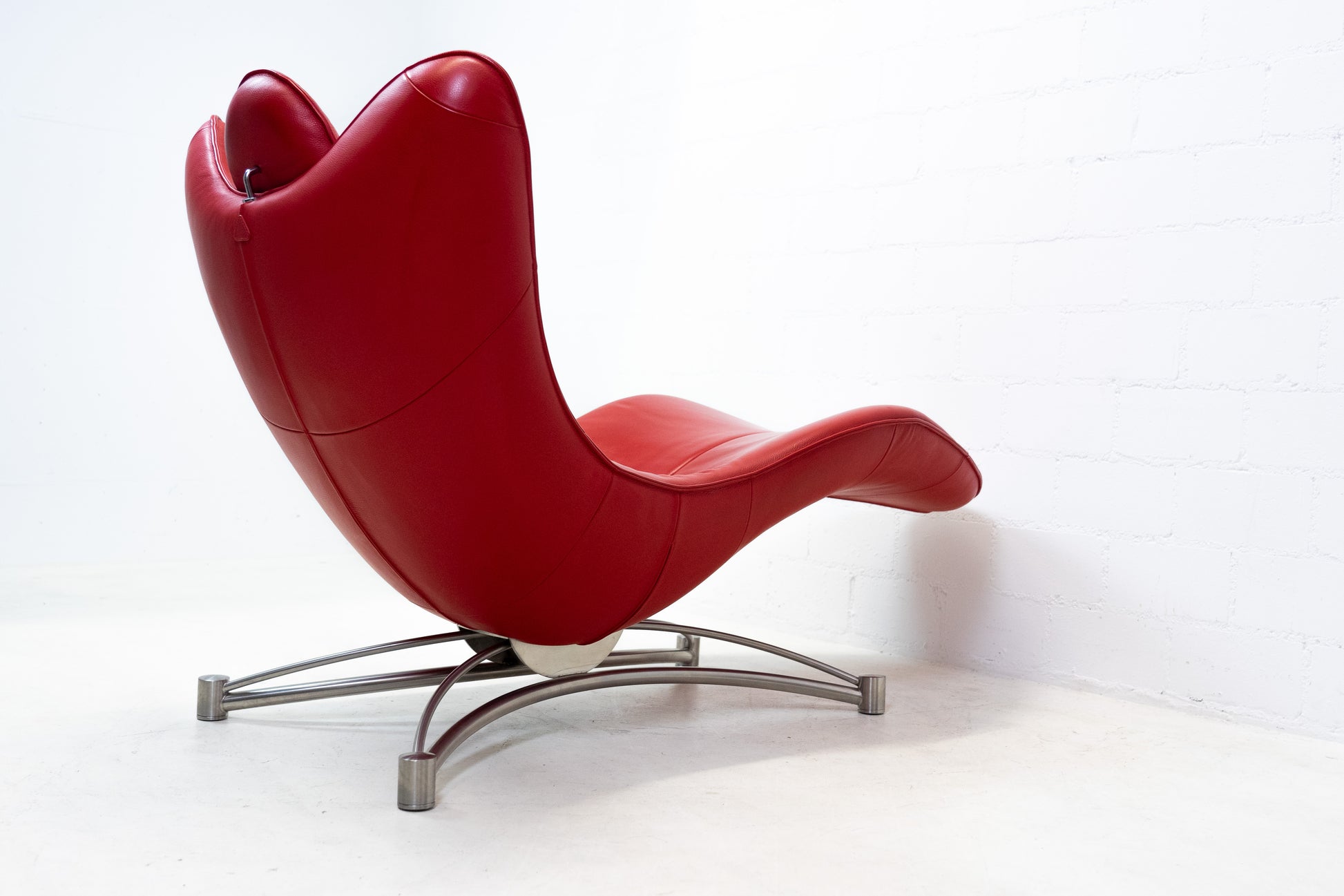 Der Bezug ist Leder, welches sehr gut / fast neuwertig erhalten ist. Es hat nur geringe Gebrauchsspuren in Form von Kratzern und Abschürfungen. Der Liegekomfort ist nach wie vor sehr gut. Die Kopfstütze der Liege lässt sich verstellen. Das Design stammt von Jane Worthington und die Liege wurde von De Sede produziert.