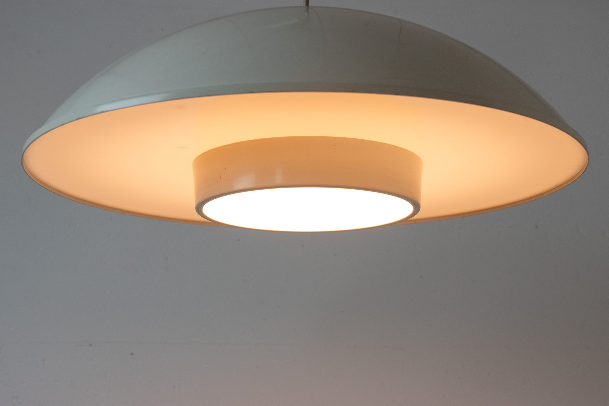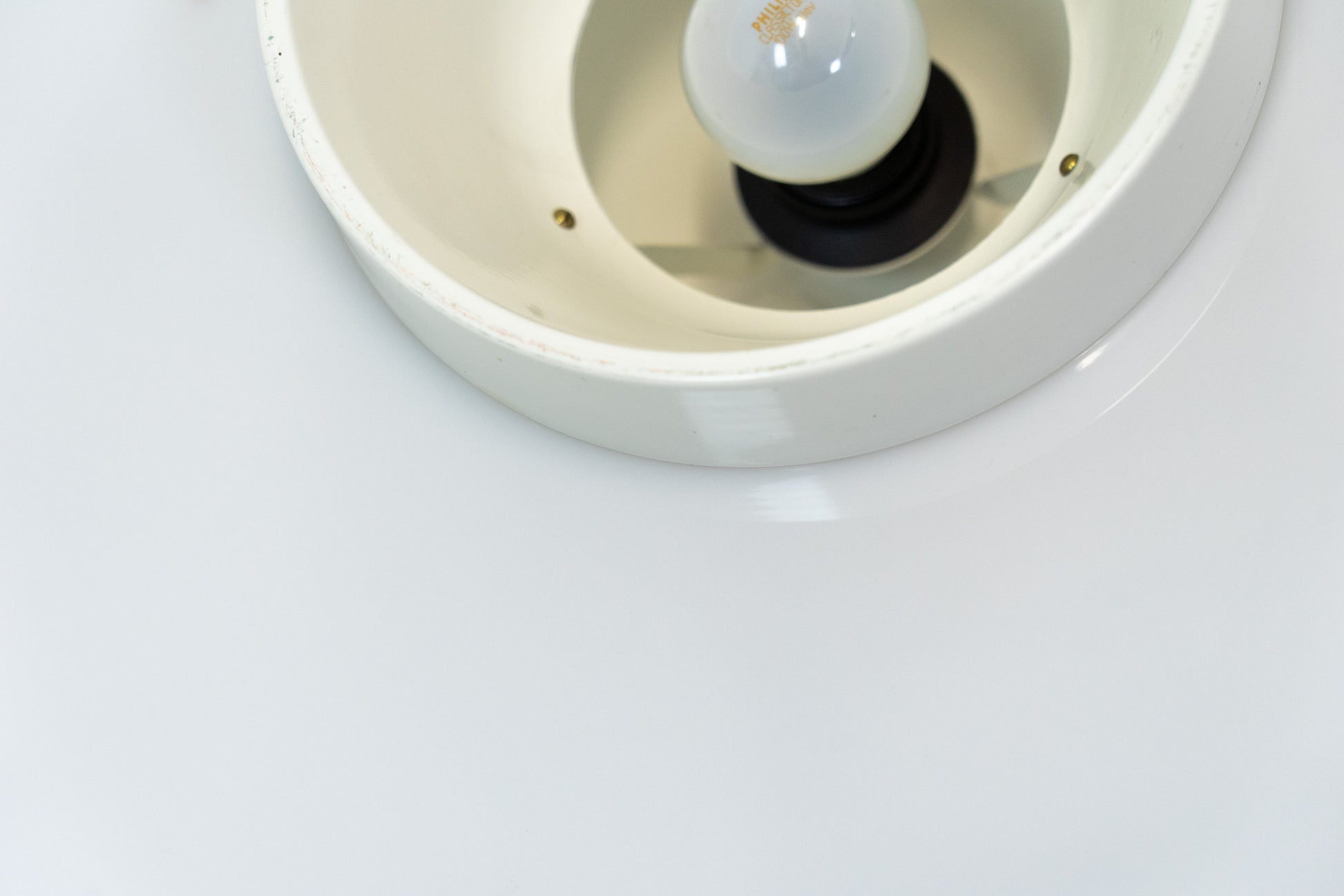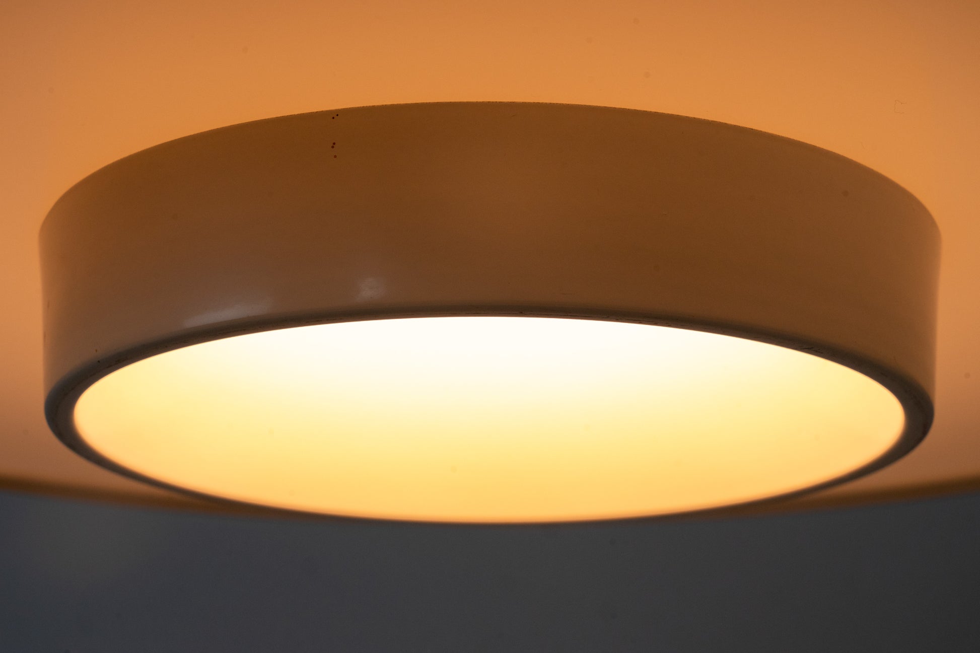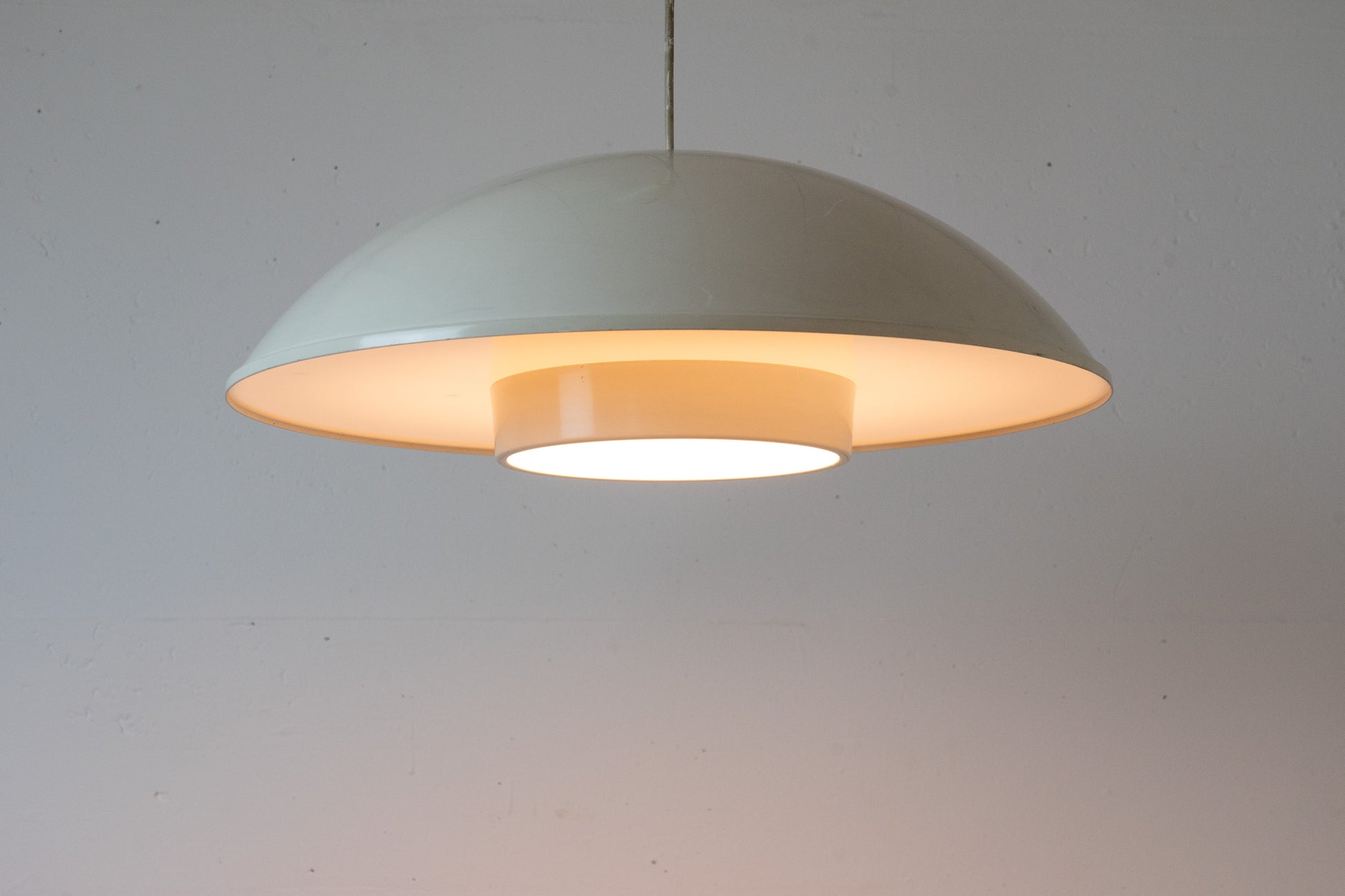 Die Lampe ist dem Alter entsprechend in Ordnung erhalten. Es hat Gebrauchsspuren in Form von Kratzern, Abschürfungen und Verfärbungen. Das Leuchtmittel ist inklusive.