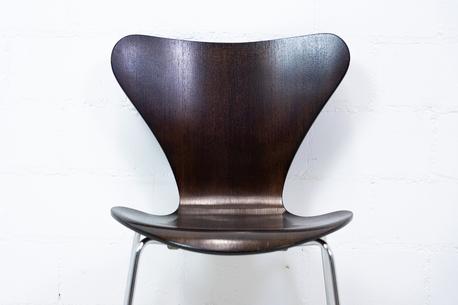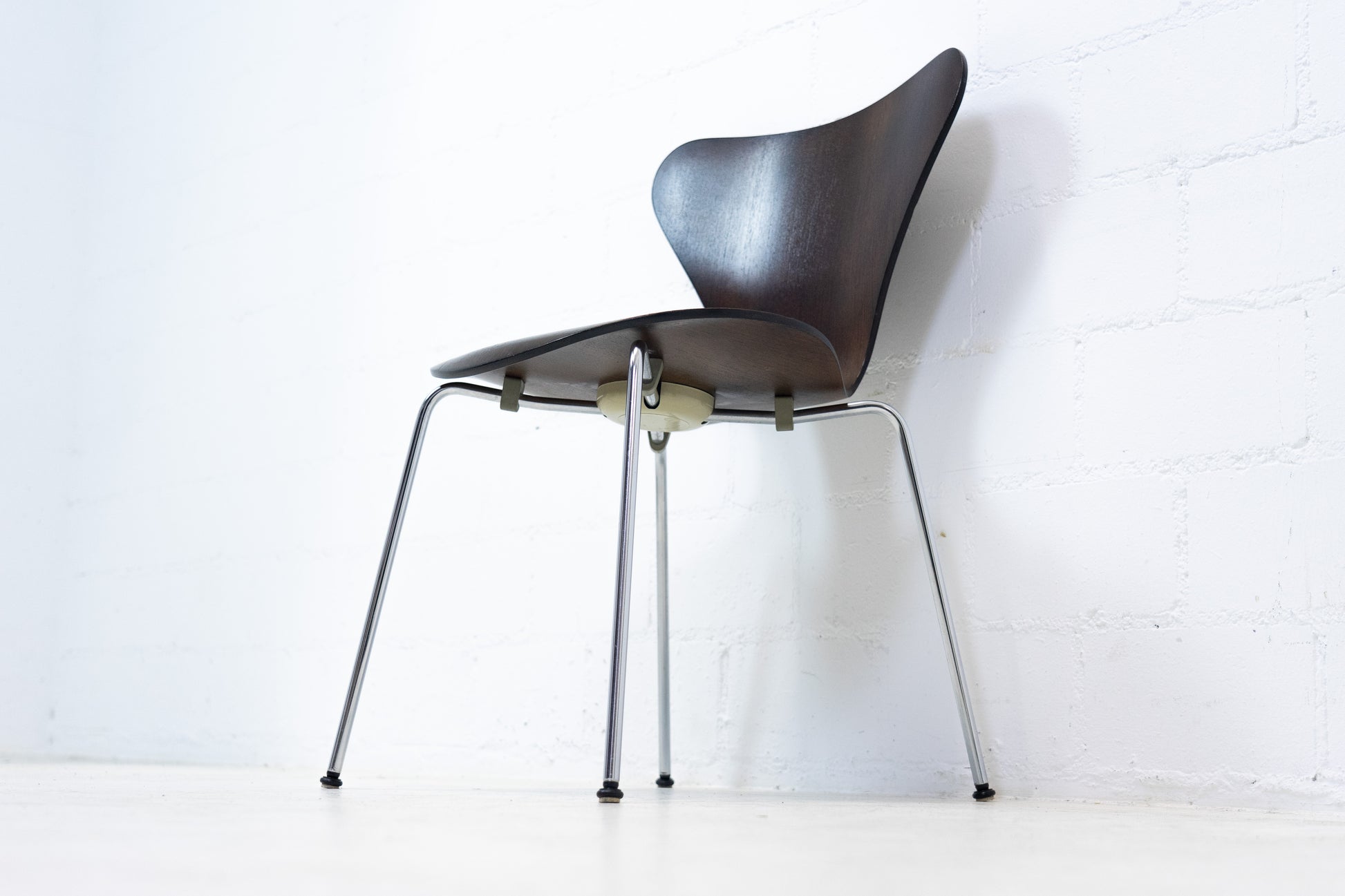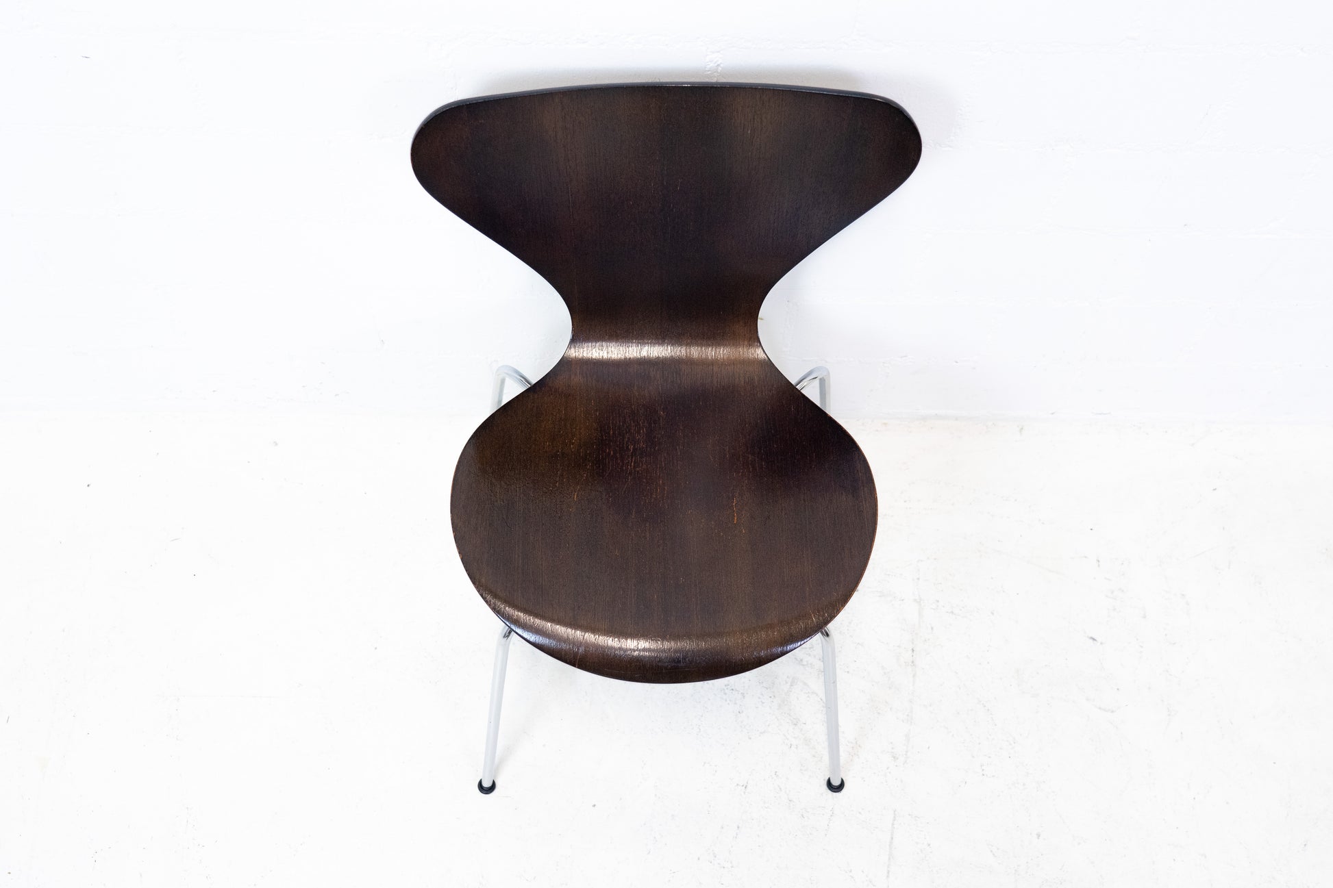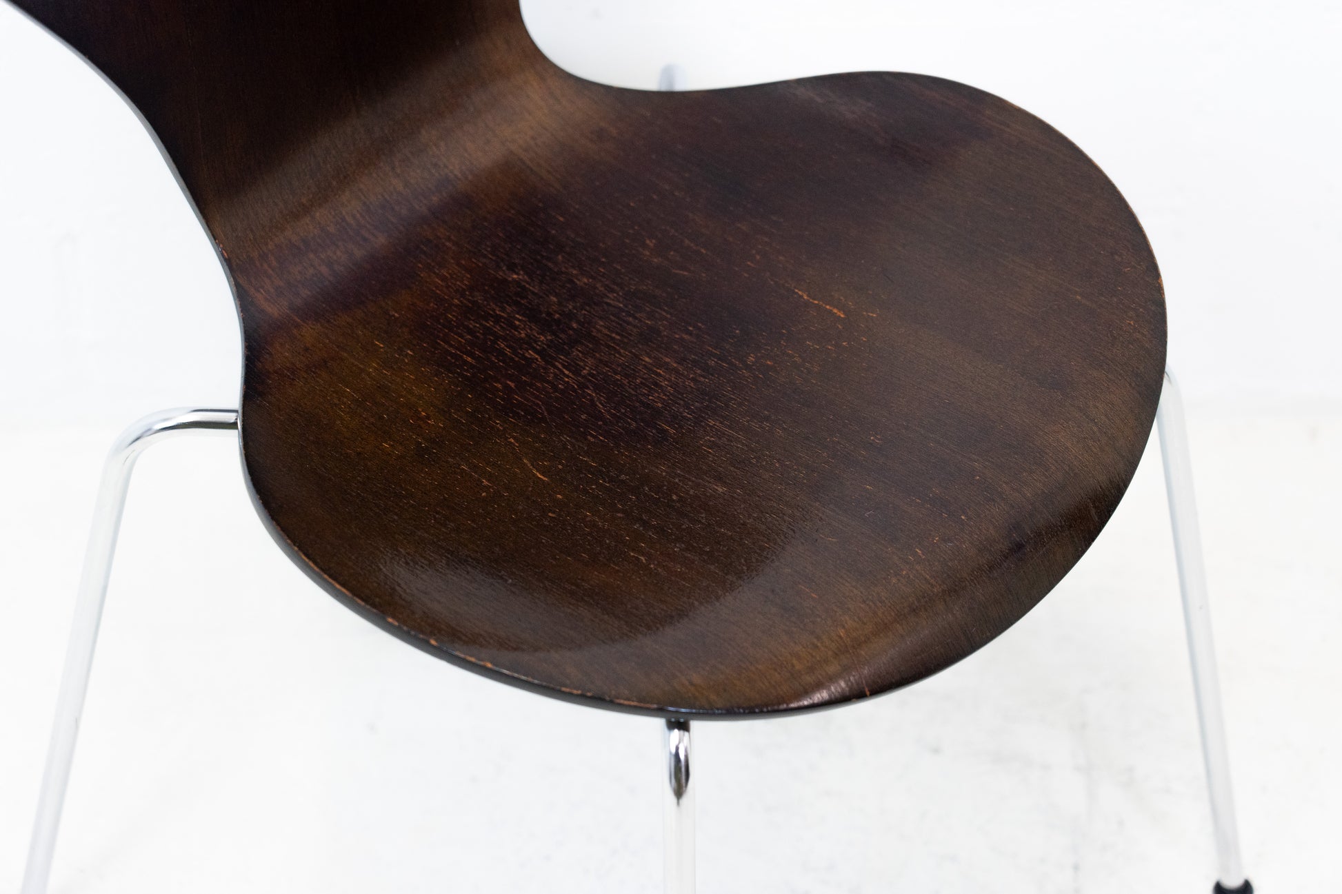 Der Stuhl ist dem Alter entsprechend gut erhalten. Es hat Gebrauchsspuren in Form von Kratzern, Abschürfungen und leichten Verfärbungen. Der Sitzkomfort ist sehr gut und die Rückenlehne immer noch schön stabil. Man sitzt auch längere Zeit sehr bequem. Der 3107 Stuhl wurde von Arne Jacobsen entworfen. Wir haben insgesamt 10 Stühle ab Lager verfügbar. Der Preis bezieht sich auf einen Stuhl. Zwei Stühle haben Schäden im Furnier. Die Stühle sind von 1976.