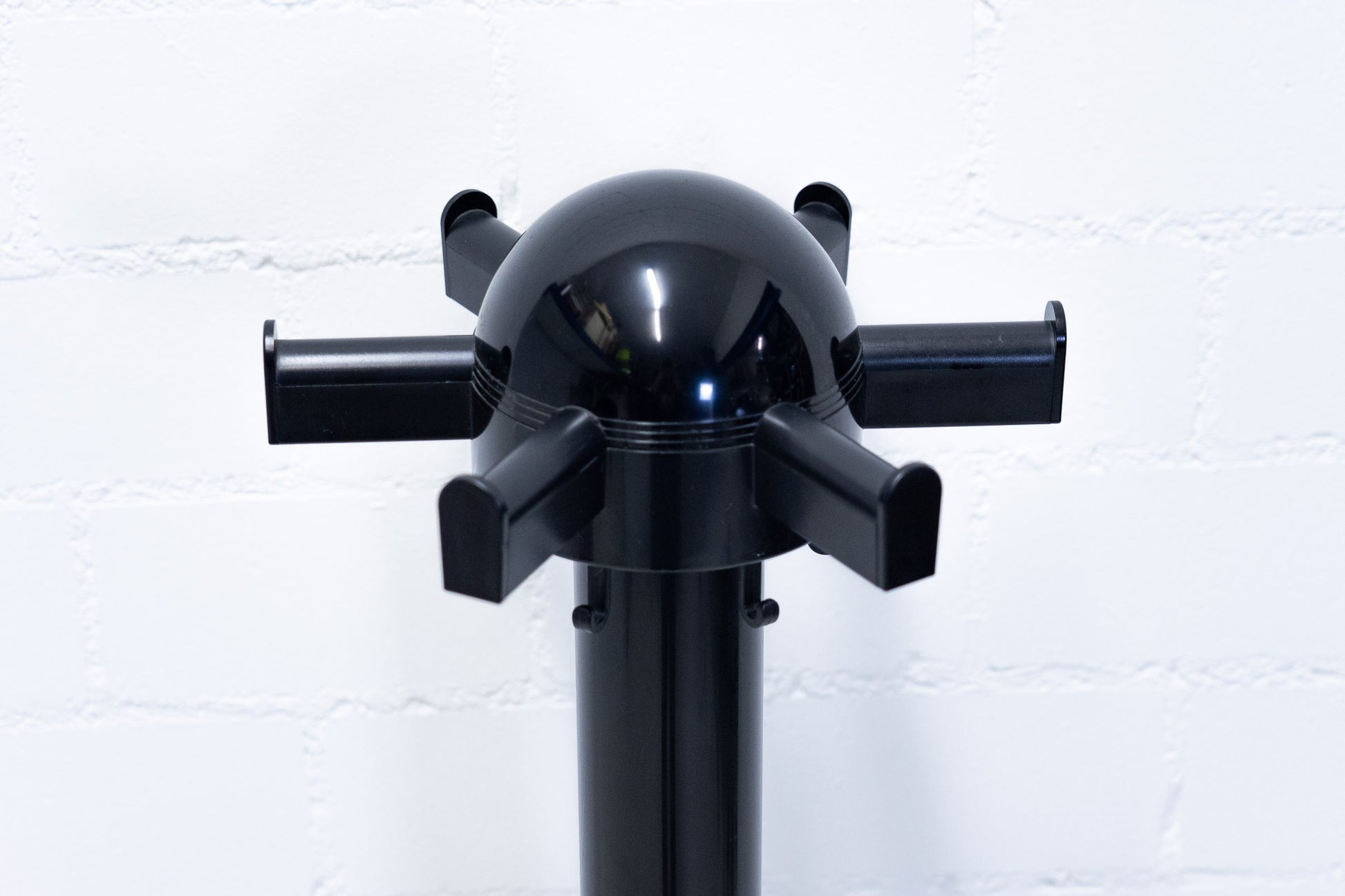 Die Garderobe ist aus Kunststoff und für den Transport einfach auseinander gesteckt werden. Es hat leichte Gebrauchsspuren in Form von Kratzern und Abschürfungen. Diese Garderobe ist nicht mehr bei Kartell im Sortiment und stammt wahrscheinlich aus den 70er Jahren.