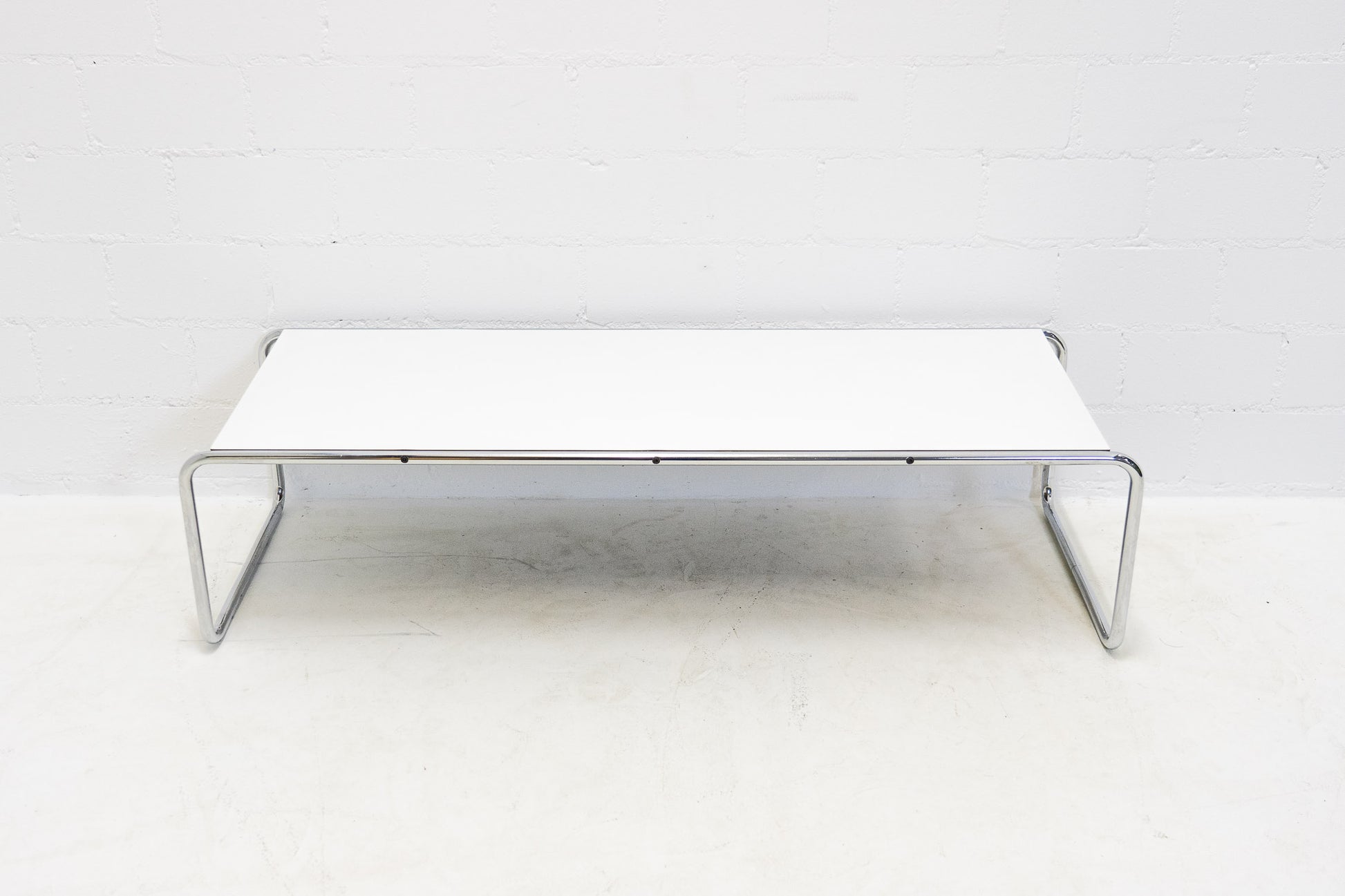 Der Tisch ist gut erhalten. Es hat leichte Gebrauchsspuren in Form von feinen Kratzern und Abschürfungen. Der Entwurf ist von Marcel Breuer.