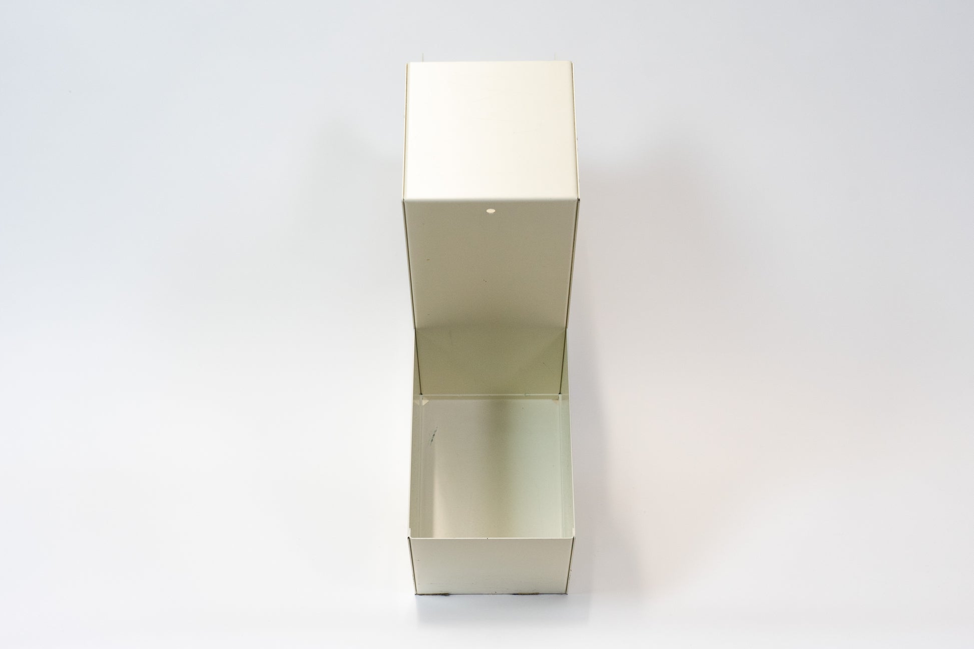 Das Möbel ist ein Zeitschriftenhalter und gut erhalten. Es hat Gebrauchsspuren in Form von Kratzern, leichten Verfärbungen und Abschürfungen. Es besteht aus pulverbeschichtetem Stahlblech. Der derzeitige Neupreis beträgt 396 Franken.Das Design ist von Charles O. Job. Er hat das Möbel 2007 entworfen. In dieser Farbe ist Bukan nicht mehr erhältlich.