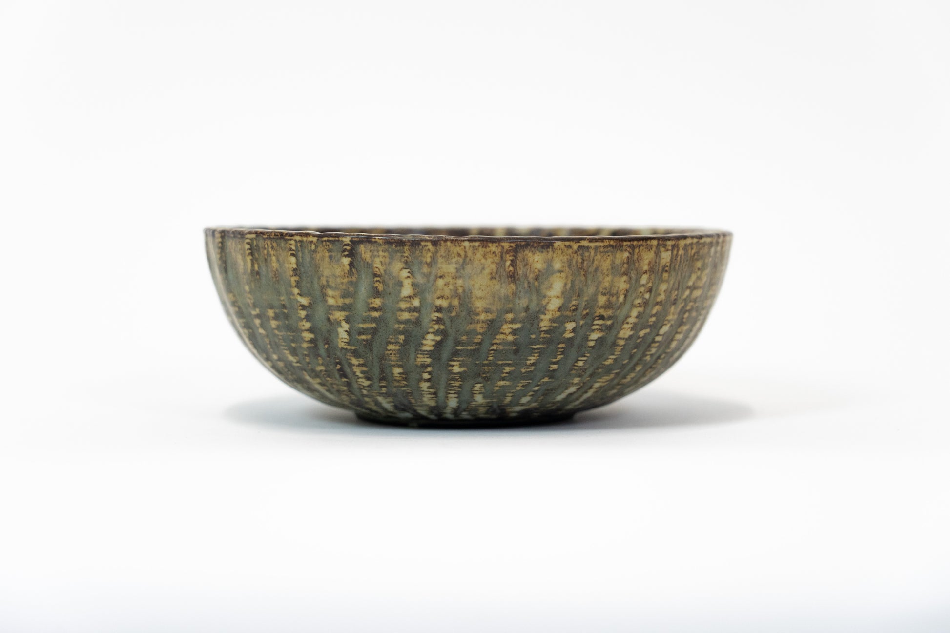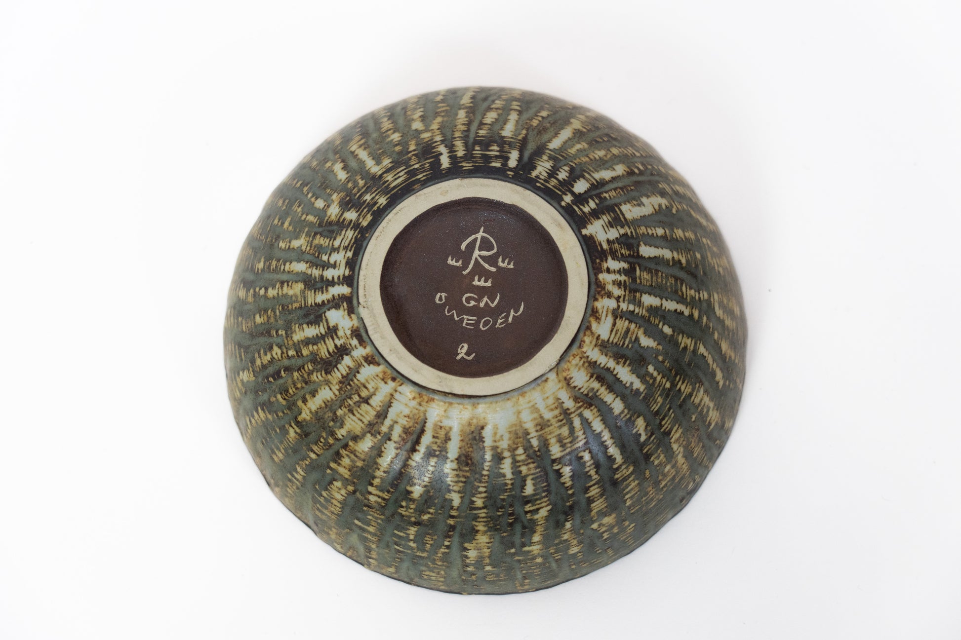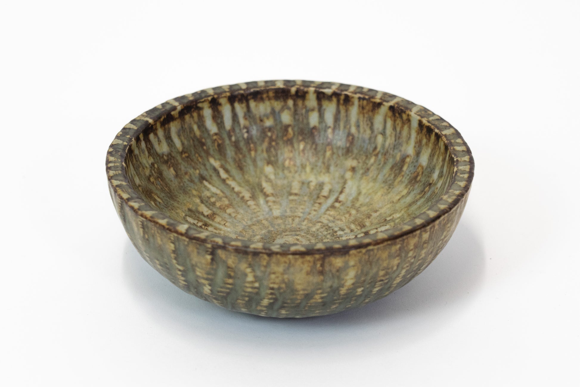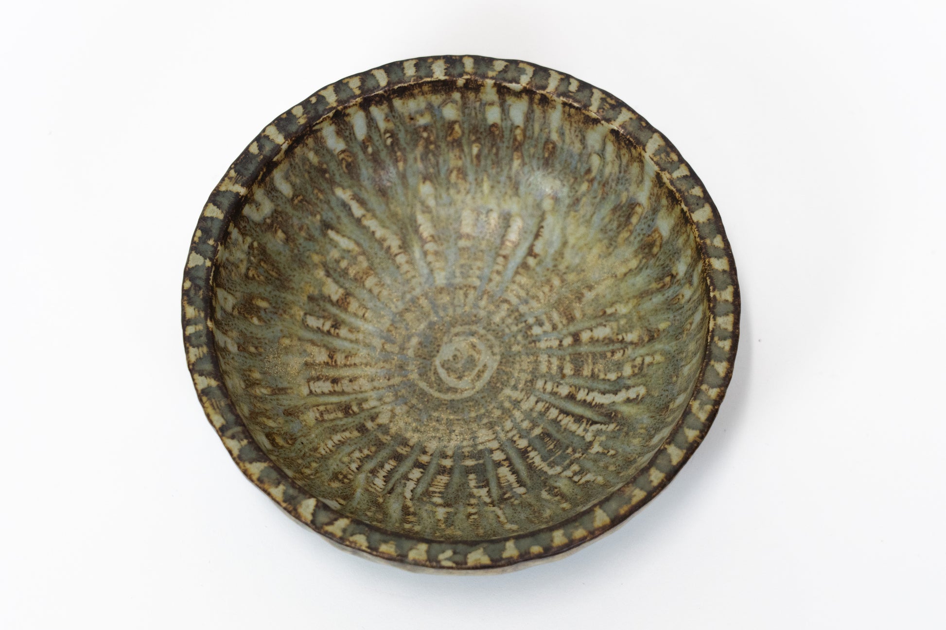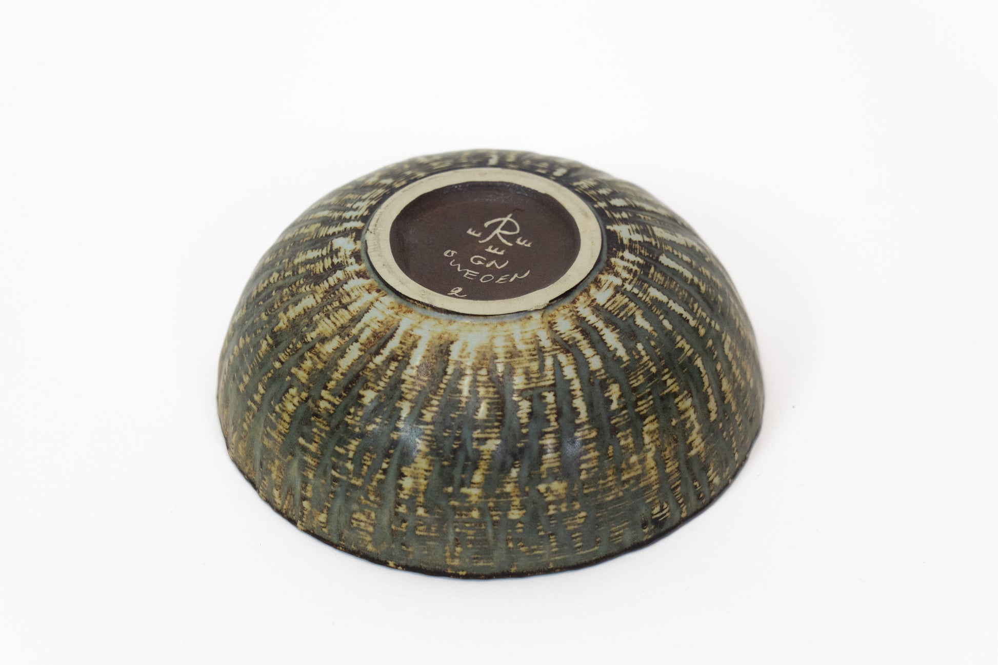 Die Schale ist gut erhalten und hat leichte Gebrauchsspuren in Form von Kratzern und Abschürfungen.