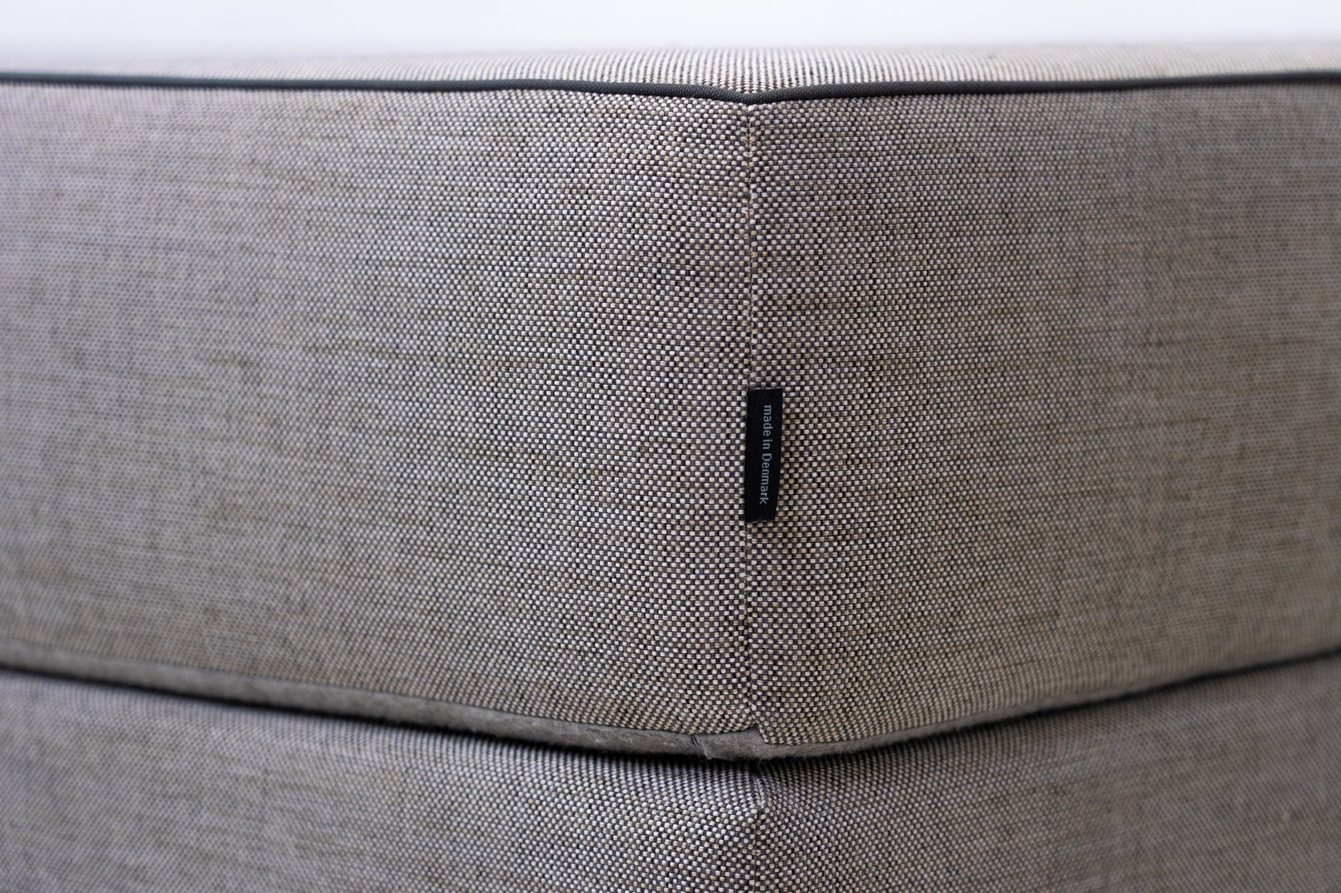 Der Bezug ist robuster Stoff, welcher gut erhalten ist. Es hat leichte Gebrauchsspuren in Form von Abschürfungen und Kratzern (hauptsächlich am Gestellt) und geringen Verfärbungen (fallen nicht gross auf). Der Sitz- und Liegekomfort ist nach wie vor sehr gut. Das Möbel lässt sich ganz leicht zum Doppelbett umbauen.