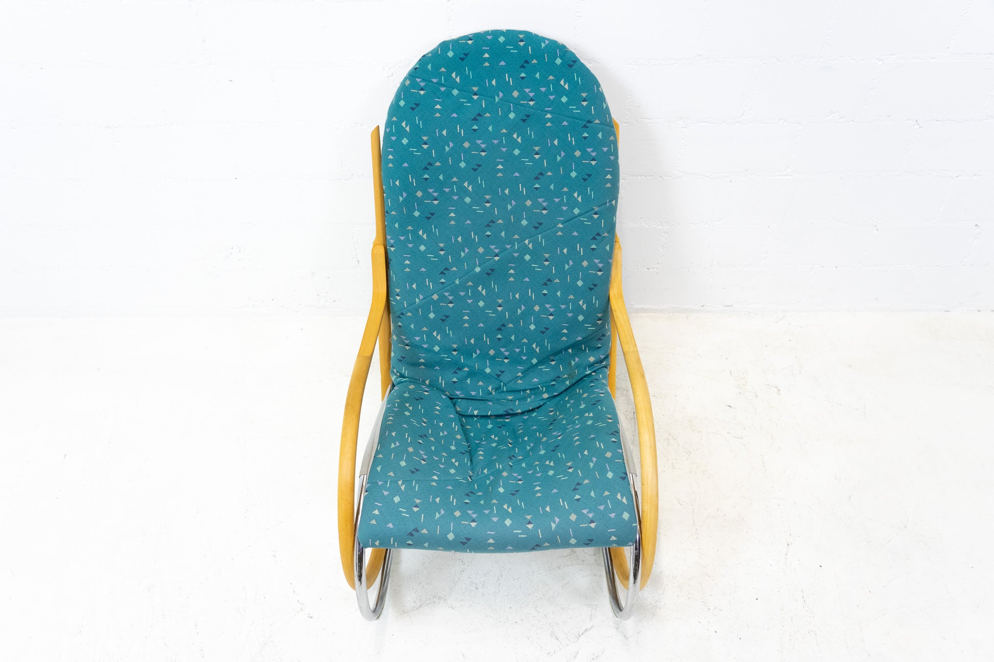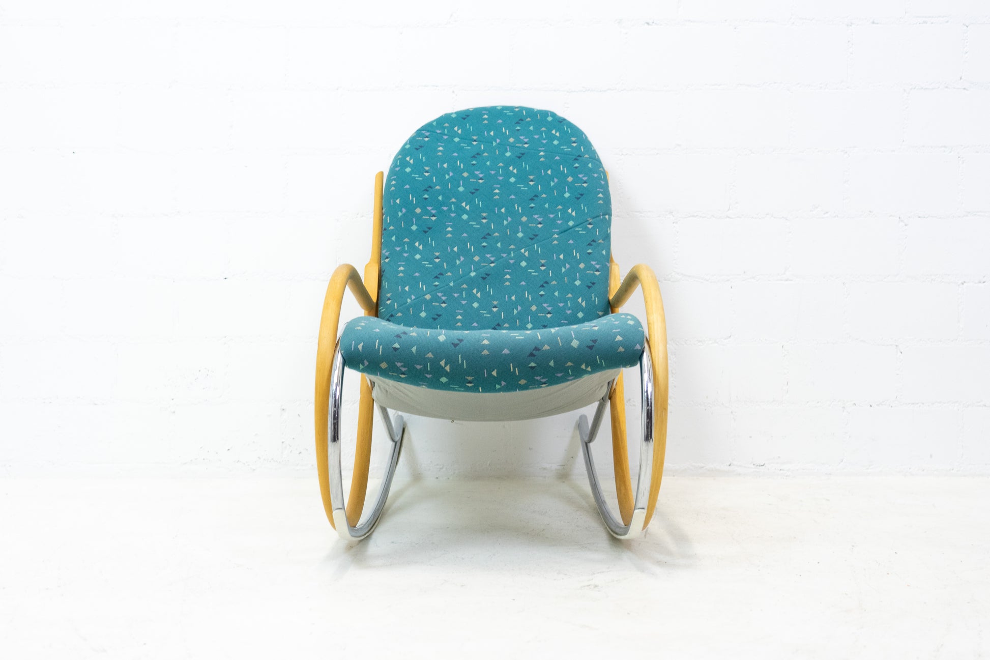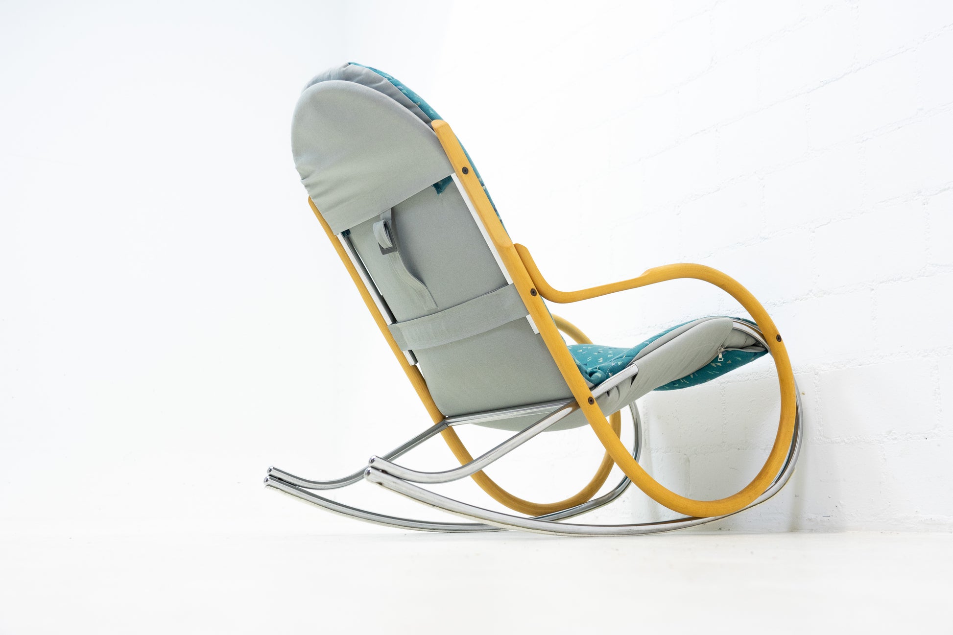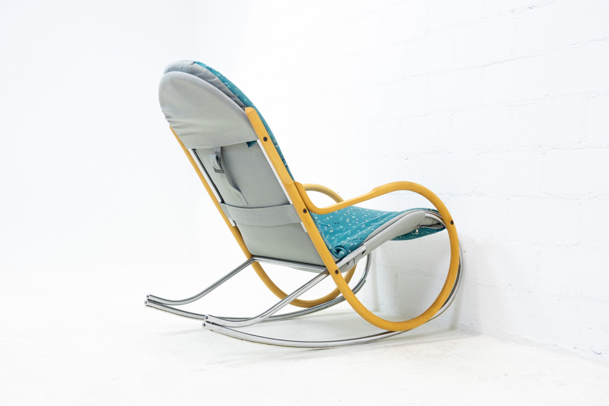 Der Bezug ist gut erhalten. Es hat Gebrauchsspuren in Form von Abschürfungen, Kratzern und Verfärbungen. Diese sind vor allem auf dem Gestell. Der Sitzkomfort ist nach wie vor super. Der Nonna Schaukelstuhl wurde von Paul Tuttle entworfen. Der derzeitige Listenpreis liegt bei ca. 3500 CHF für den Sessel. Der Stuhl wurde von der Vorbesitzerin neu bezogen.