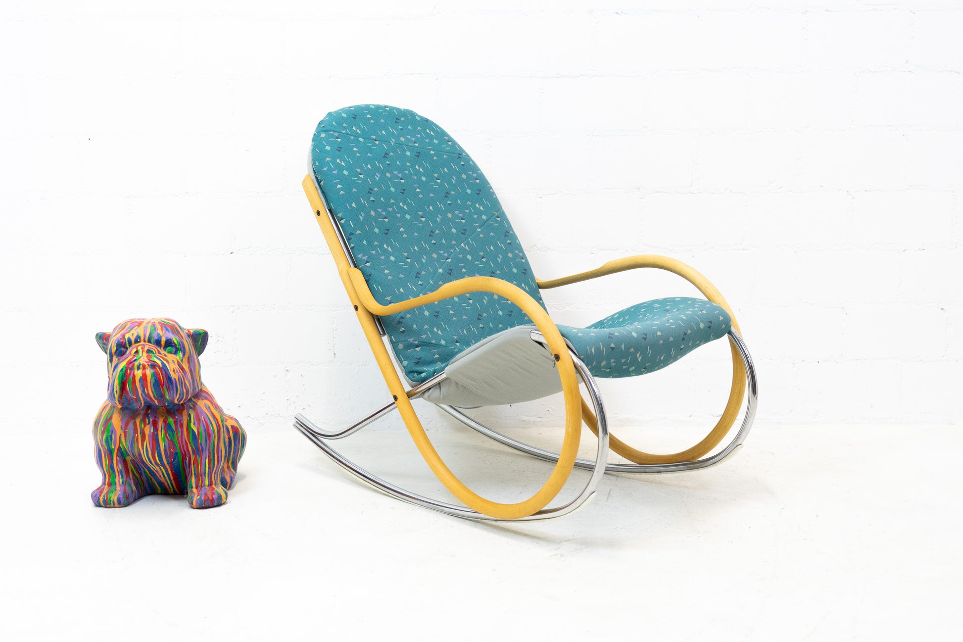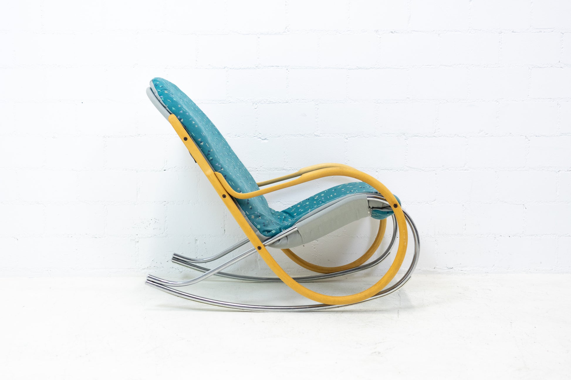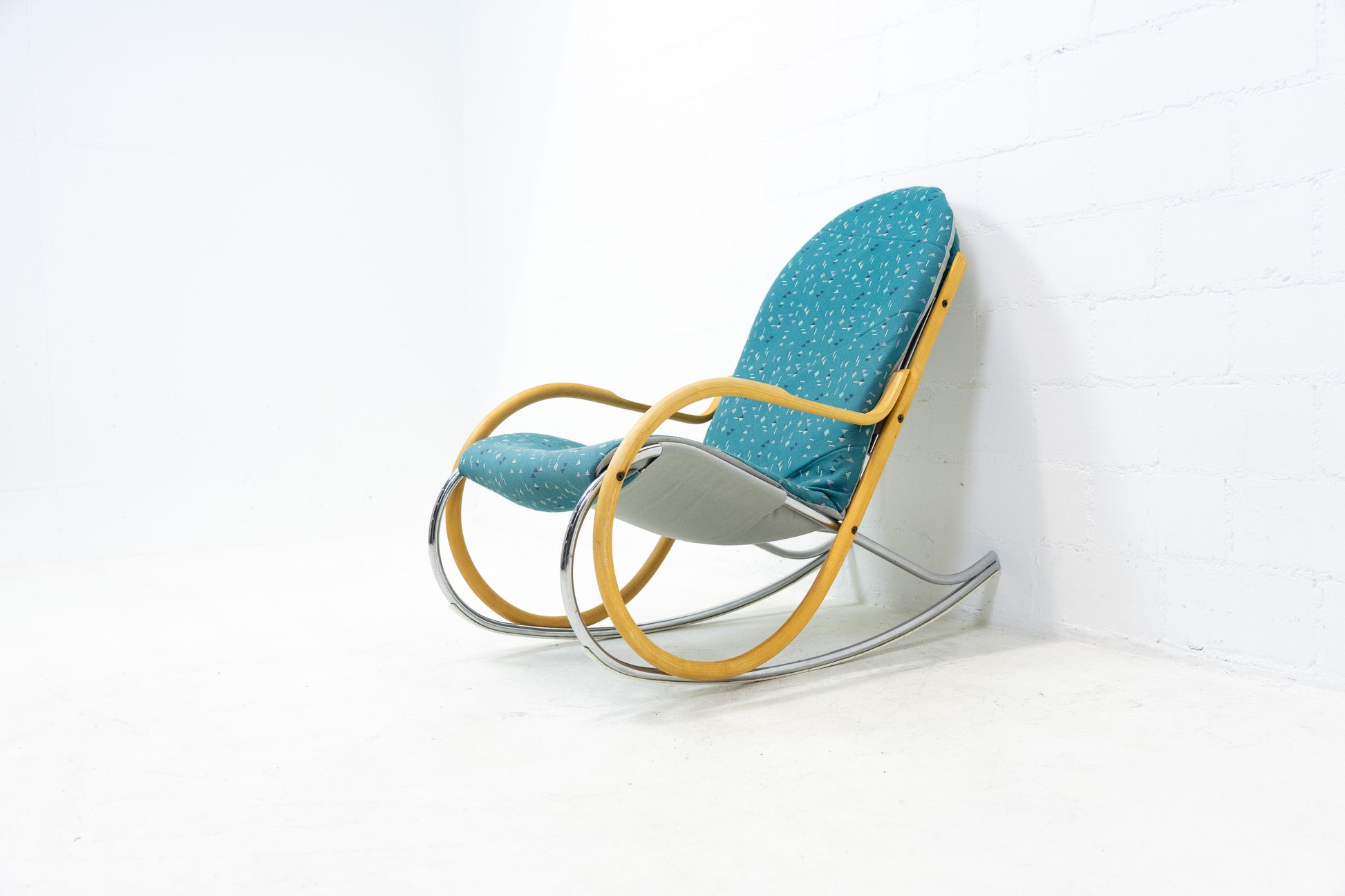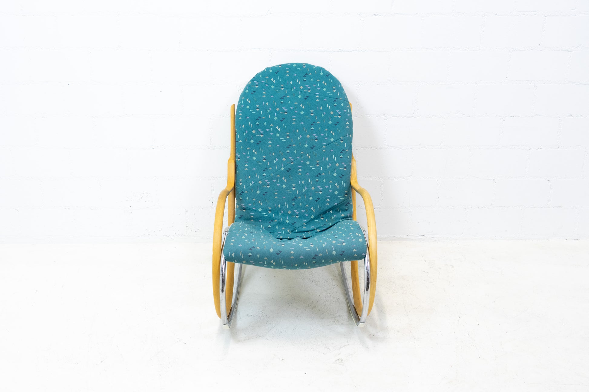 Der Bezug ist gut erhalten. Es hat Gebrauchsspuren in Form von Abschürfungen, Kratzern und Verfärbungen. Diese sind vor allem auf dem Gestell. Der Sitzkomfort ist nach wie vor super. Der Nonna Schaukelstuhl wurde von Paul Tuttle entworfen. Der derzeitige Listenpreis liegt bei ca. 3500 CHF für den Sessel. Der Stuhl wurde von der Vorbesitzerin neu bezogen.