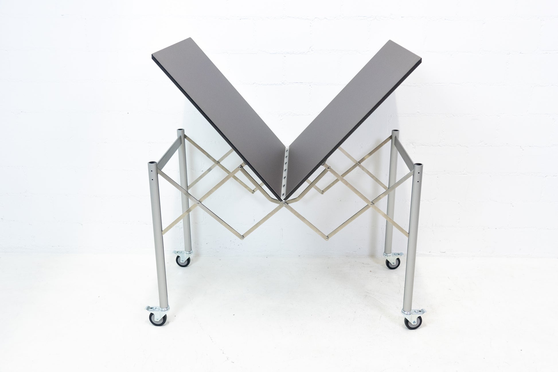 Hier können Sie einen gebrauchten Scheren-Tisch der Marke Thut kaufen. Das Möbel kann gerne vorab in 8207 Schaffhausen besichtigt werden. Besichtigungen sind bei uns auf Termin von Montag-Sonntag von 9-20 Uhr möglich. Die Adresse ist: