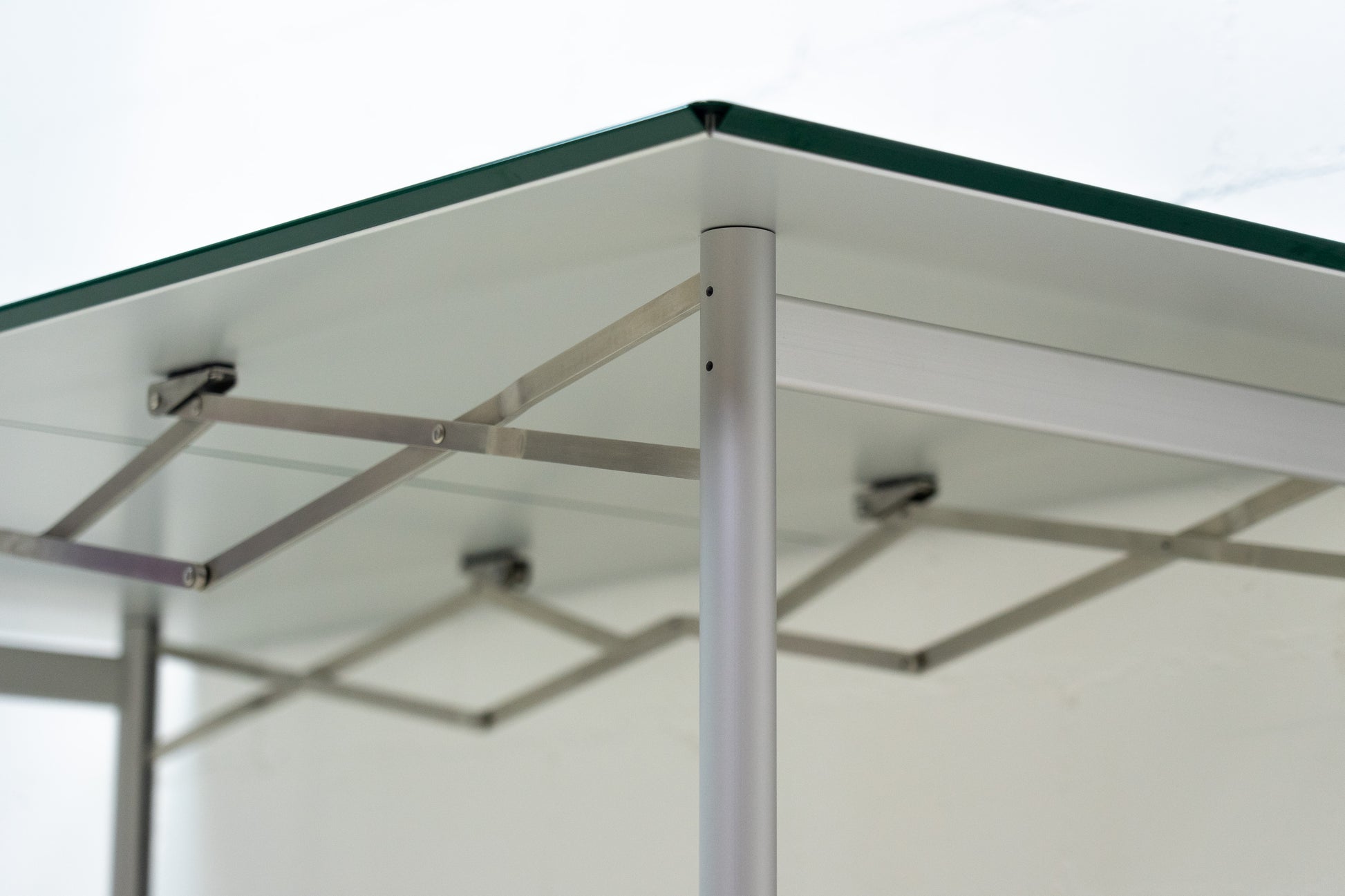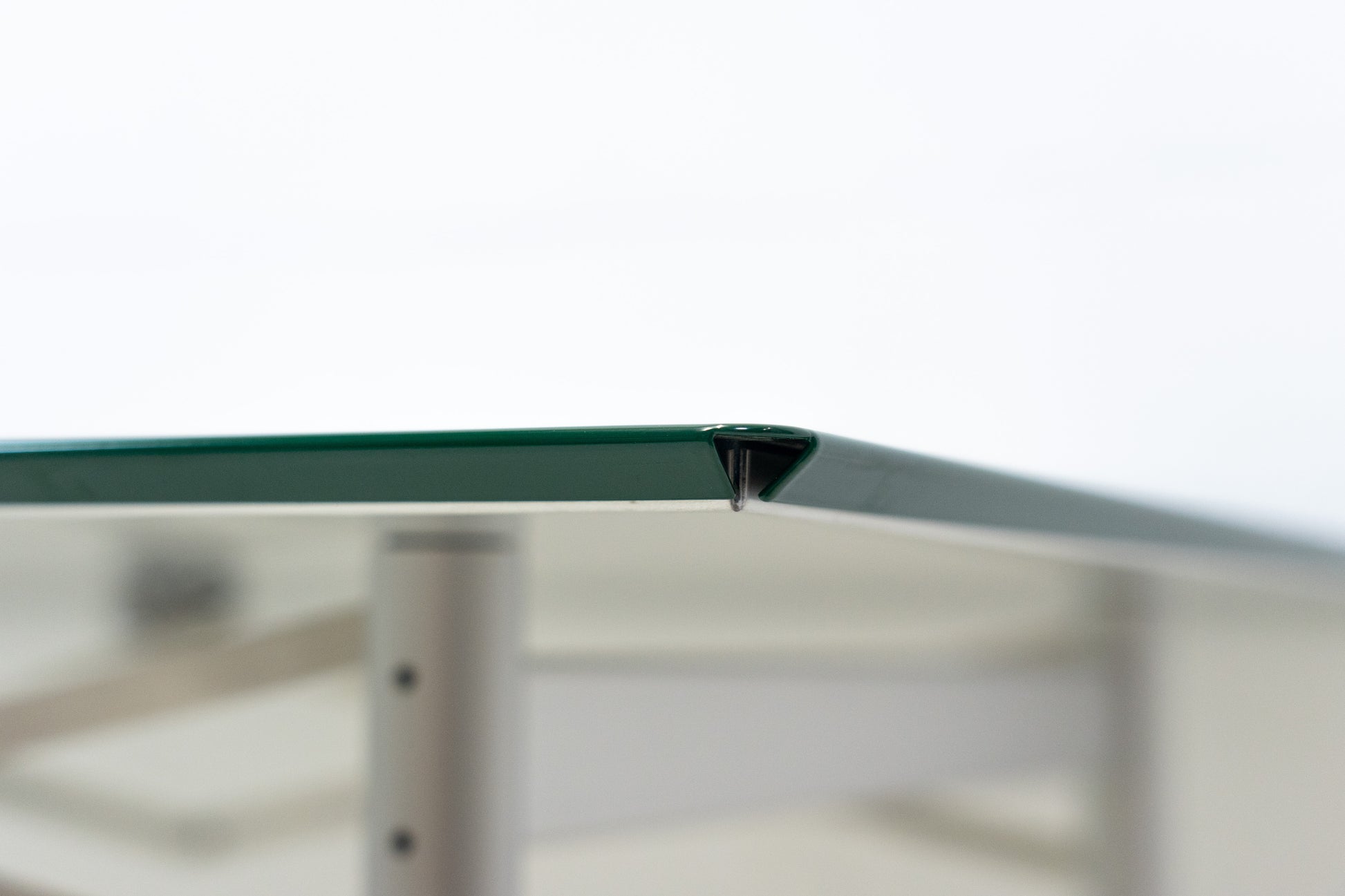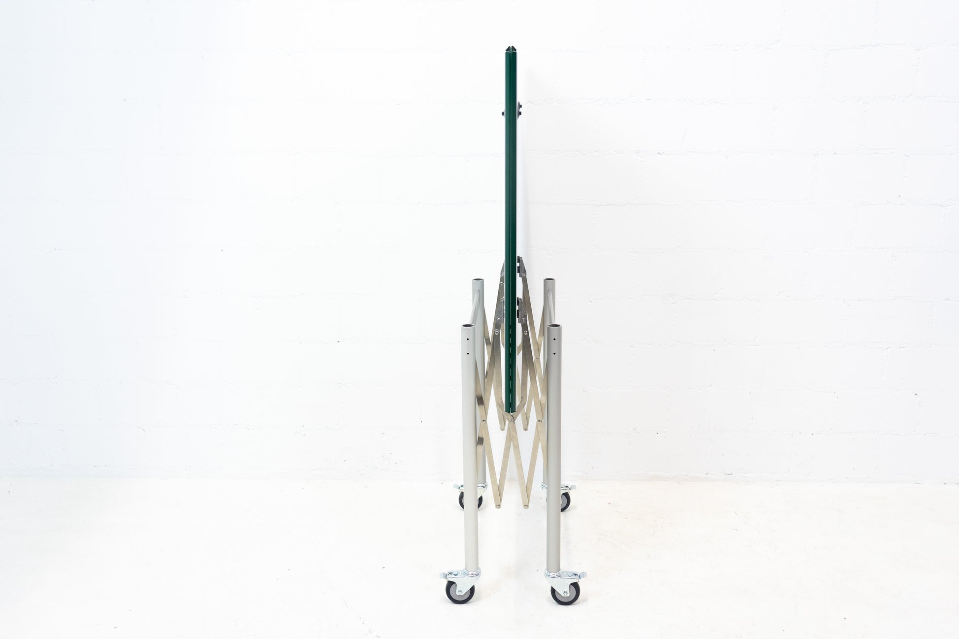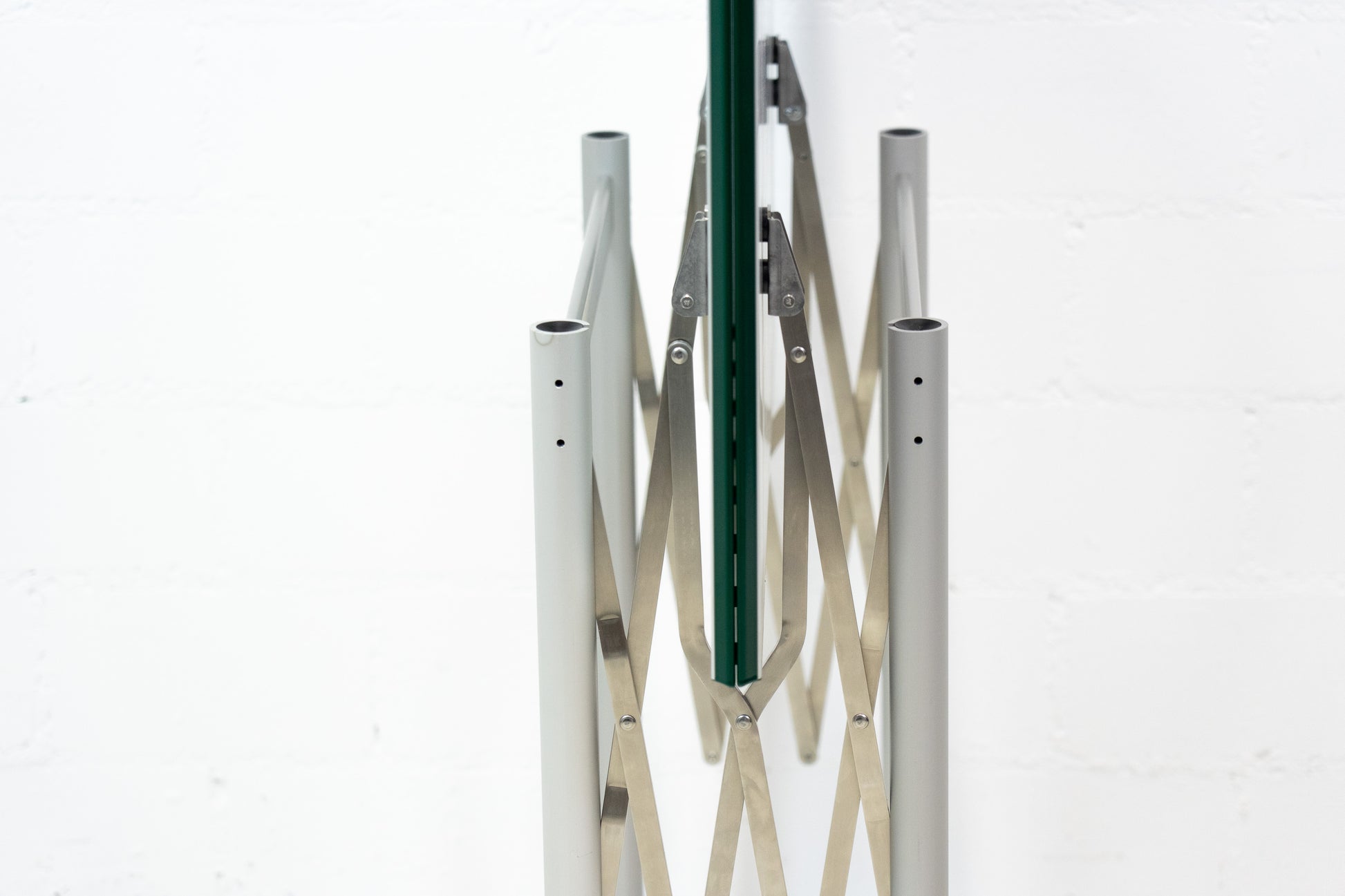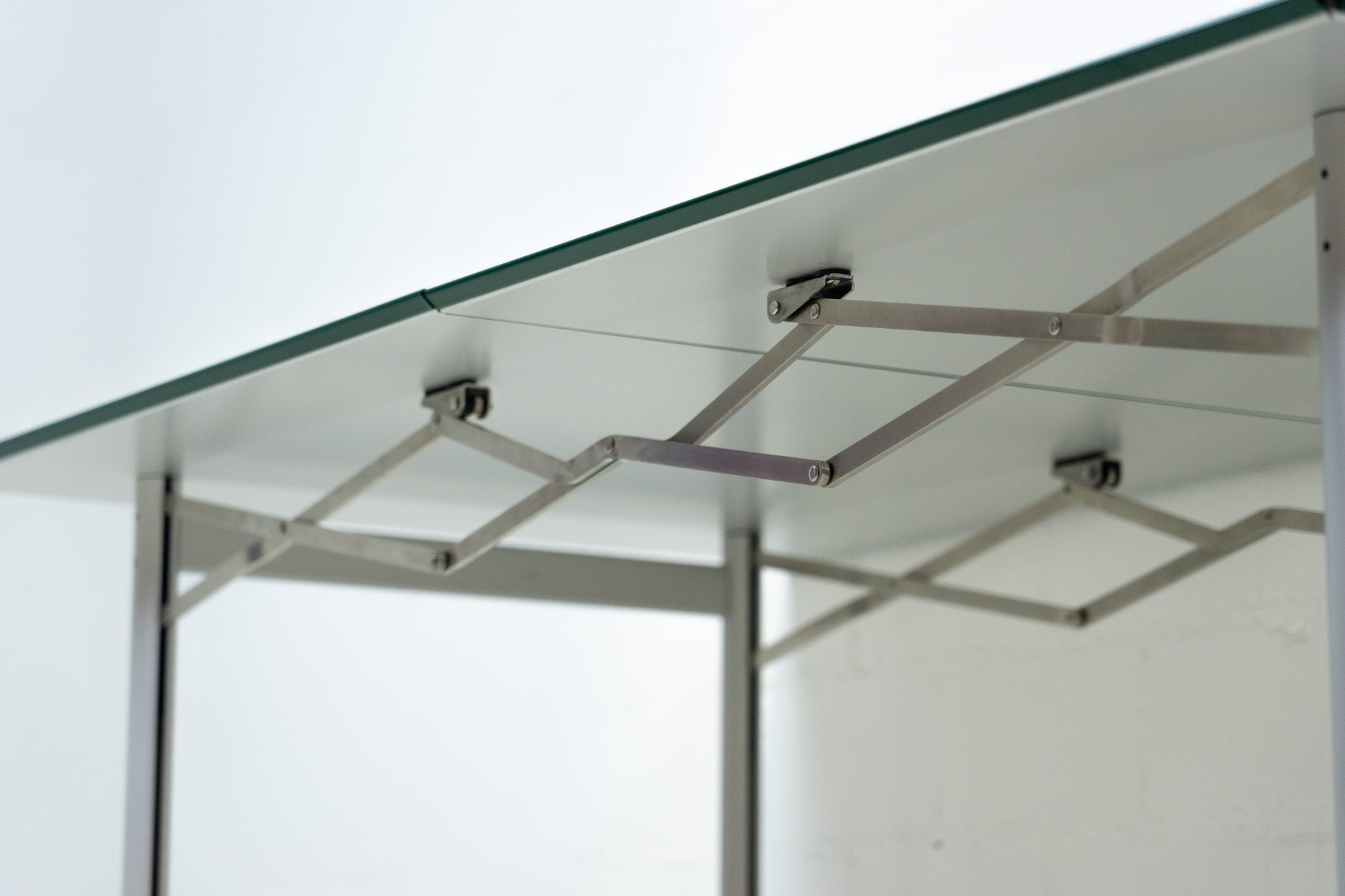 Der Tisch ist sehr gut / fast neuwertig erhalten. Es hat nur geringe Gebrauchsspuren, die kaum auffallen. Auf der Platte hat es feine Kratzer, die je nach Winkel nicht stark auffallen. Wir haben davon ein Detailfoto gemacht. Der Entwurf von Benjamin Thut ist aus dem Jahr 2001. Der derzeitige Neupreis für eine Version in eloxiertem Aluminium ist im Thut Shop 3406 Franken. Dieser Tisch ist jedoch eine Sonderanfertigung. Er hat eine lackierte Platte in British Racing Green und kann so nicht offiziell bestellt werden. Der Tisch kann einfach zusammengeklappt werden und einfach verstaut werden. Wir haben in dieser Ausführung insgesamt 14 Tische ab Lager verfügbar. Der Preis bezieht sich auf einen Tisch.