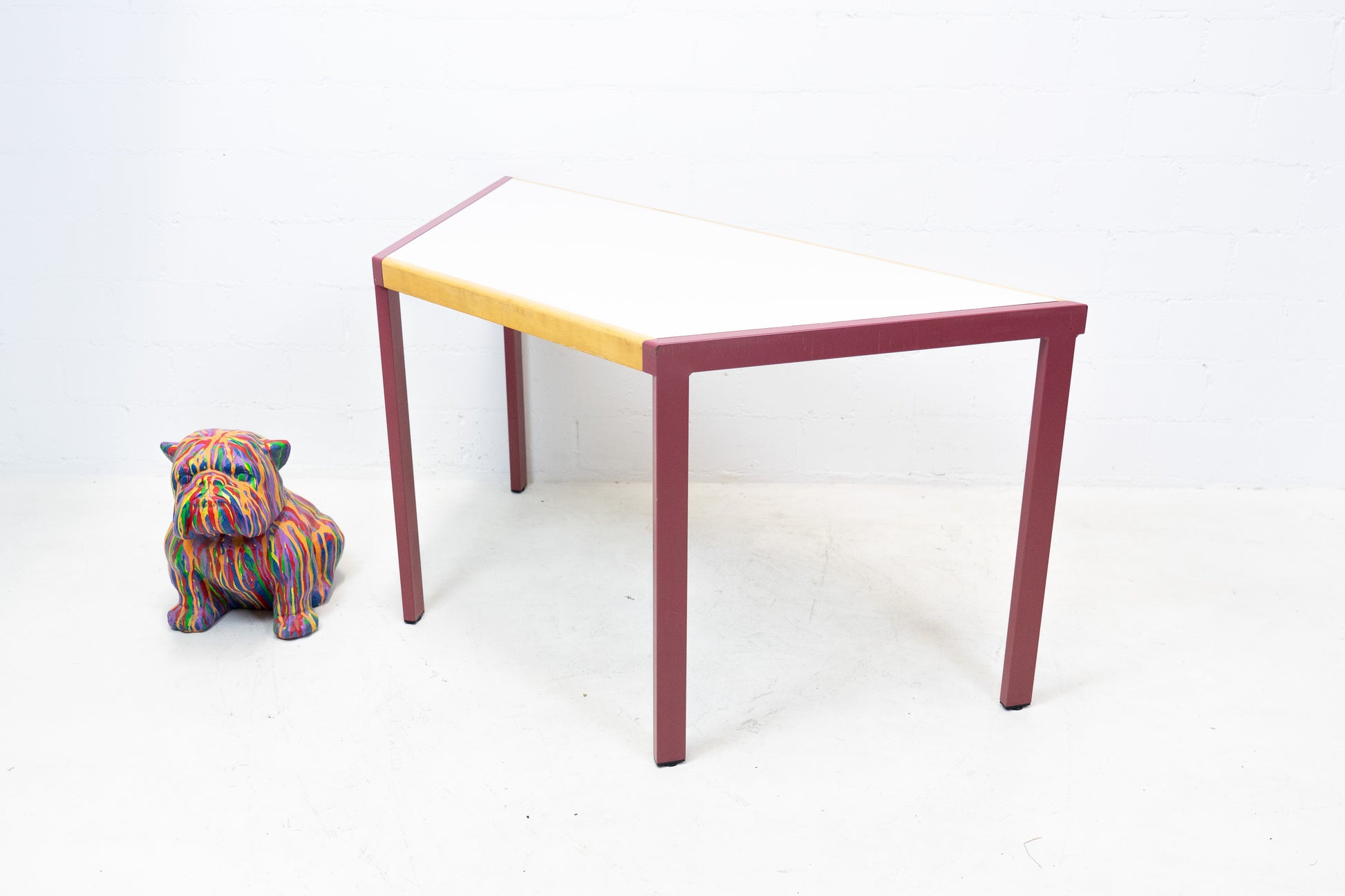 Der Tisch ist qualitativ hochwertig gebaut. Es hat stellenweise Gebrauchsspuren in Form von Abschürfungen, Kratzern und Verfärbungen. Wir haben davon Detailfotos gemacht. Ansonsten ist der Tisch gut erhalten. Wir haben 4 Tische ab Lager verfügbar. Der Preis bezieht sich auf einen Tisch.