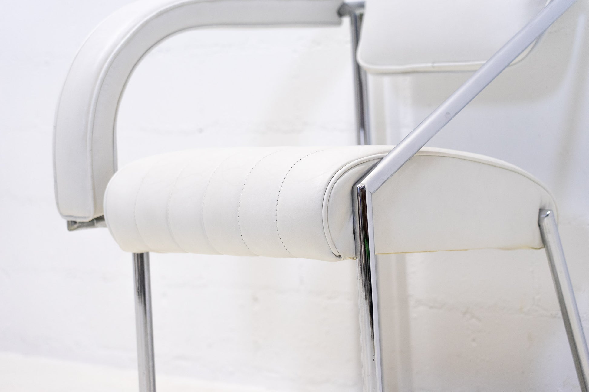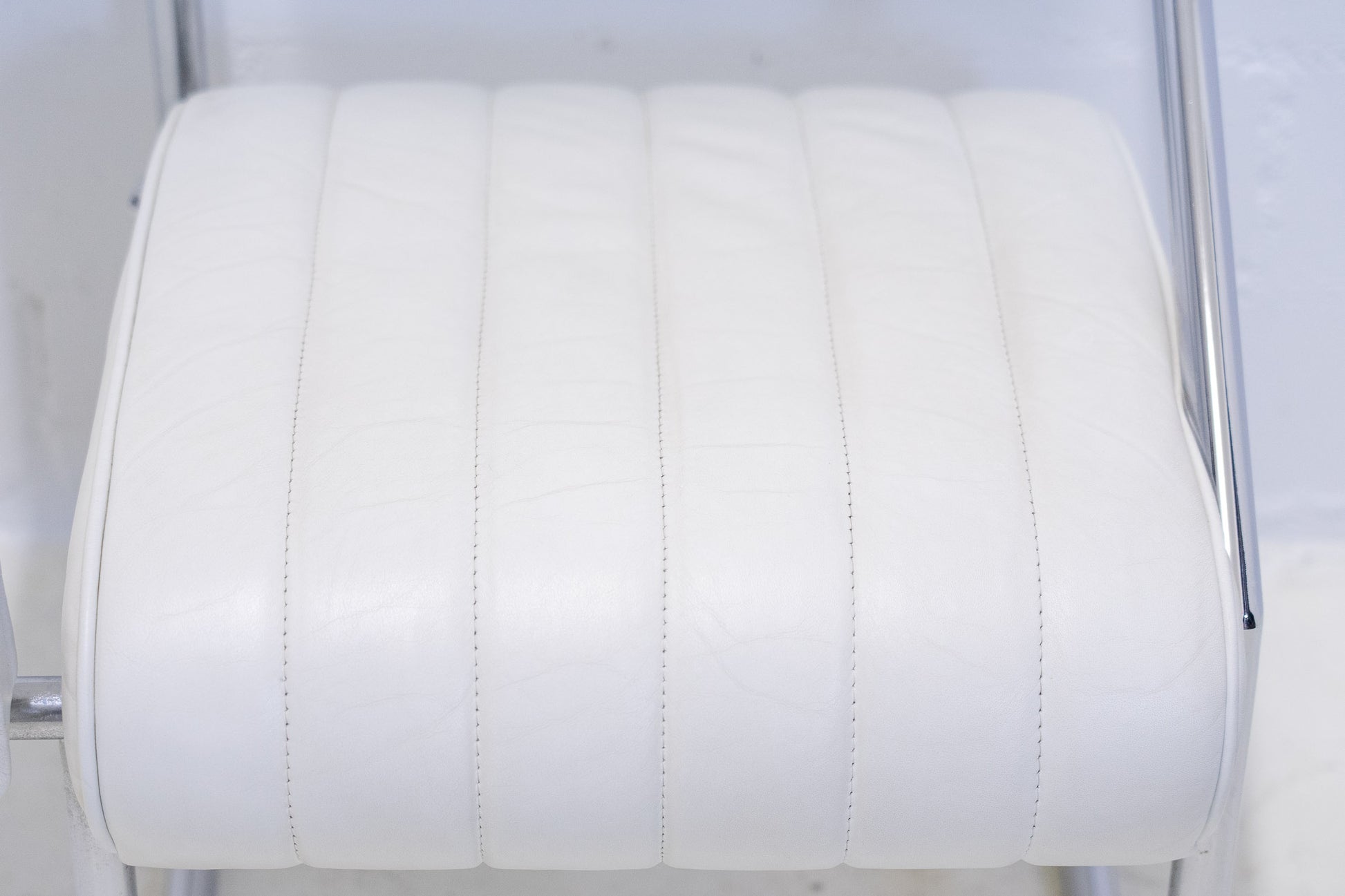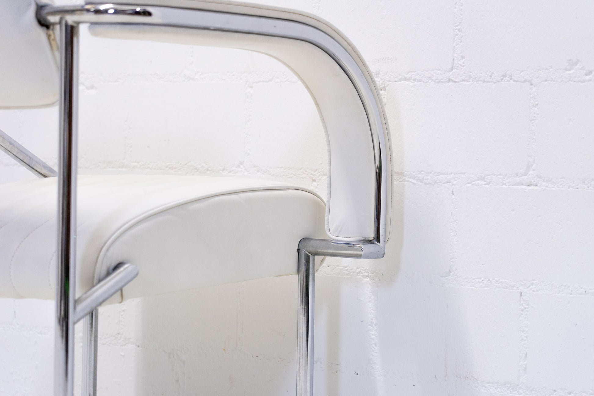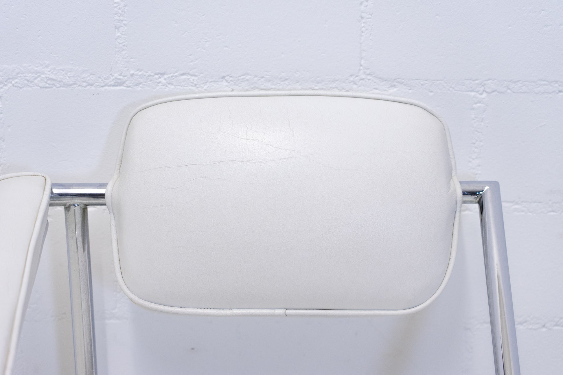 Der Sessel ist gut erhalten. Es hat dem Alter entsprechend leichte Gebrauchsspuren in Form von Abschürfungen, Kratzern und feinen brüchigen Stellen. Das Metall ist teilweise patiniert. Für ein Alter von ca. 50 Jahren ist der Sessel jedoch noch schön erhalten. Der Sitzkomfort ist sehr gut. Das Design stammt von Eileen Gray.