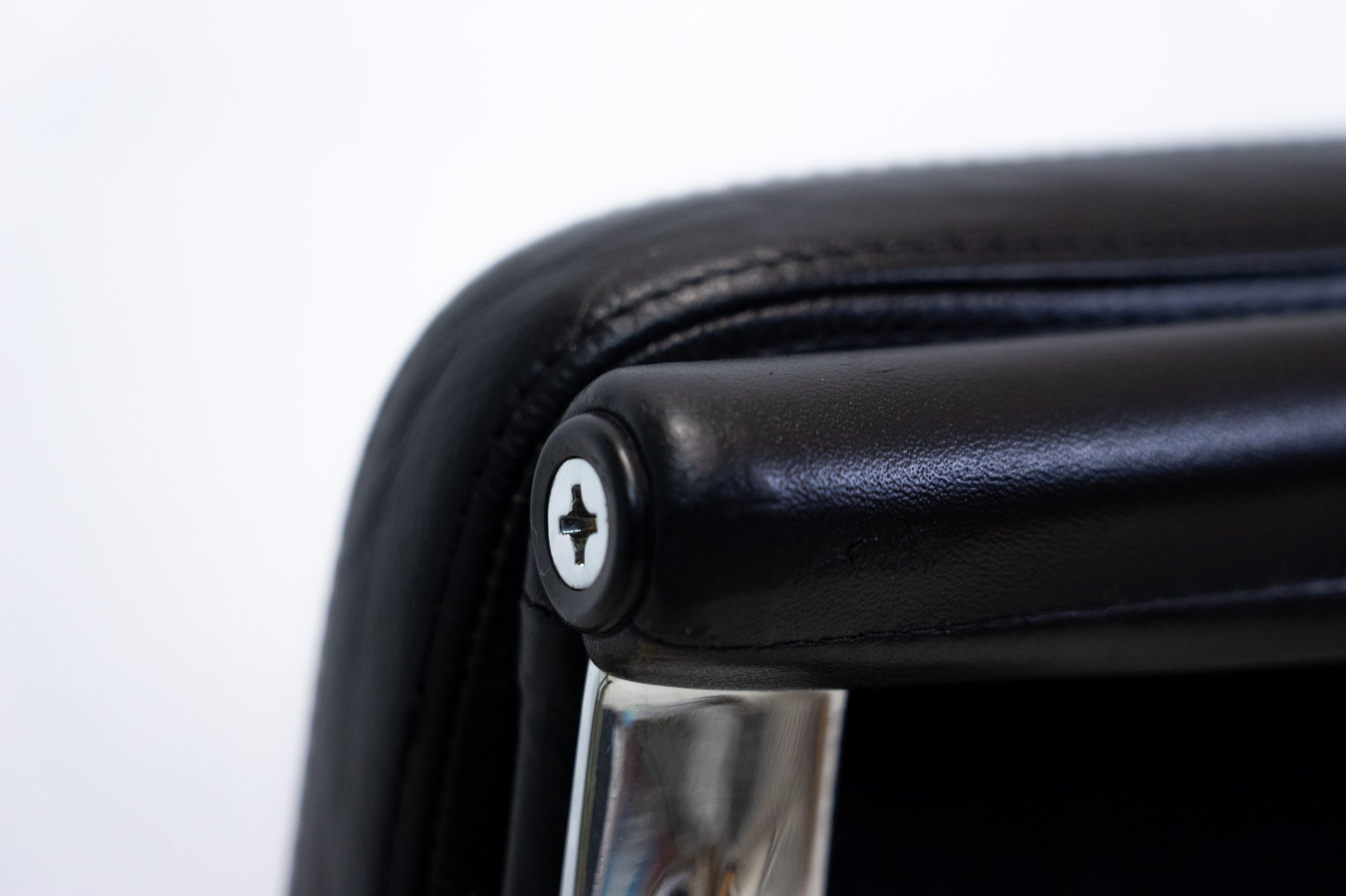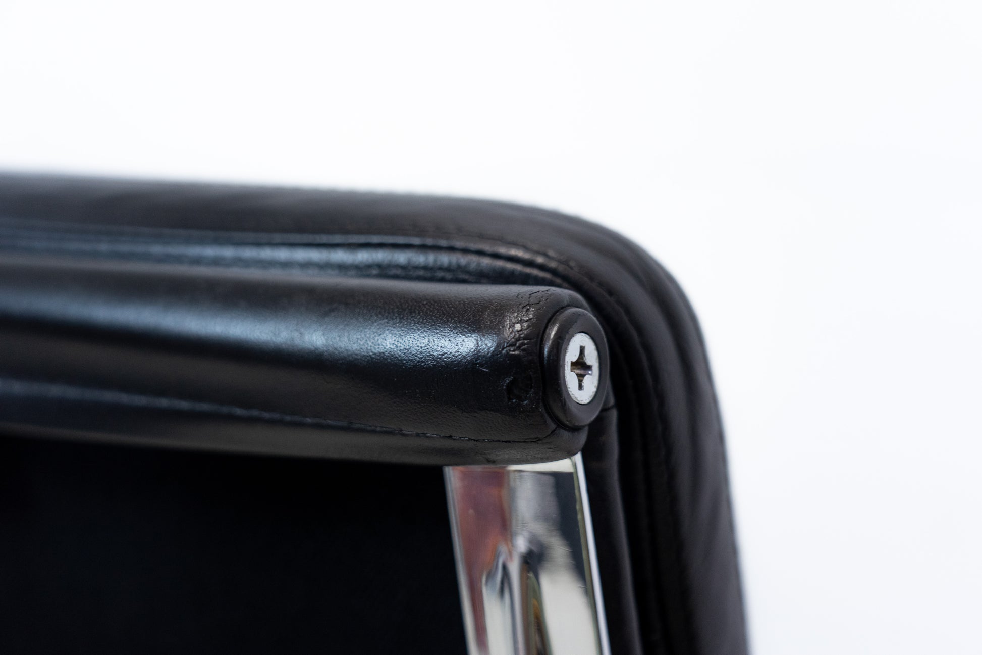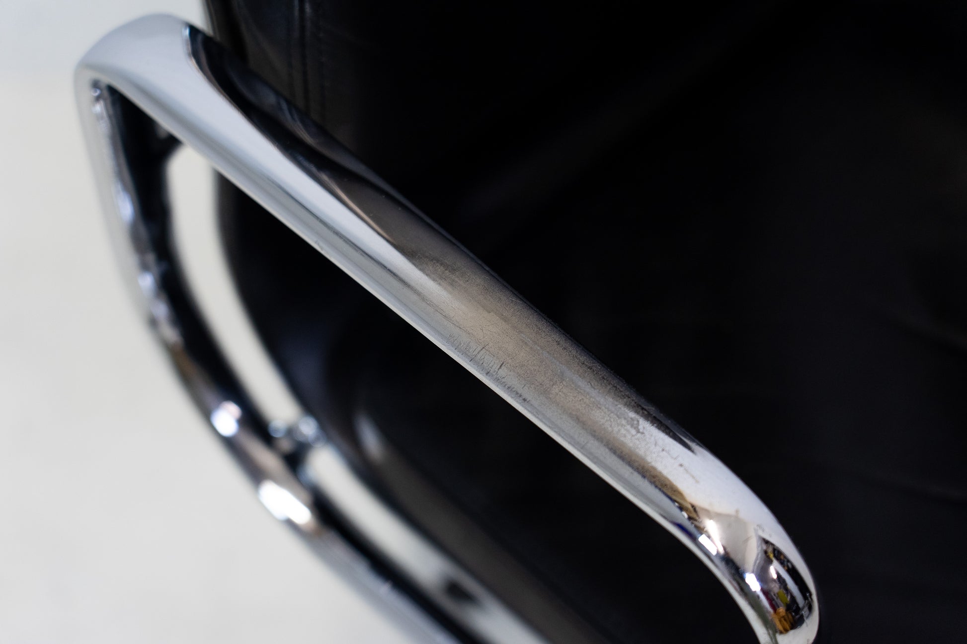 Der Stuhl ist gut erhalten und sehr angenehm zum Sitzen. Es hat leichte Gebrauchsspuren in Form von Kratzern und Abschürfungen. Eine Armlehne ist etwas stärker patiniert. Wir haben davon ein Detailfoto gemacht. Das Leder wurde aufgearbeitet und nachgetönt und befindet sich nun wieder in einem schönen Zustand. Der Neupreis bei Vitra beträgt momentan 4999 CHF für diese Ausführung. Dieser Klassiker wurde von Ray Eames und Charles Eames entworfen.