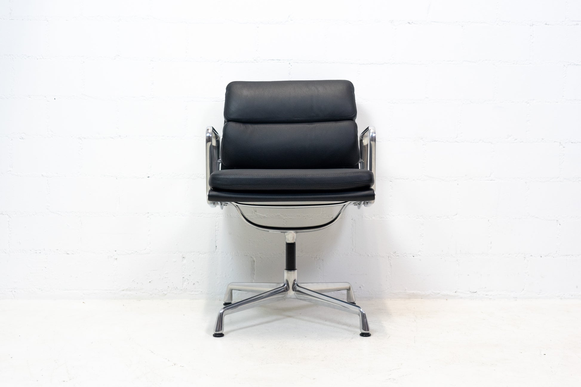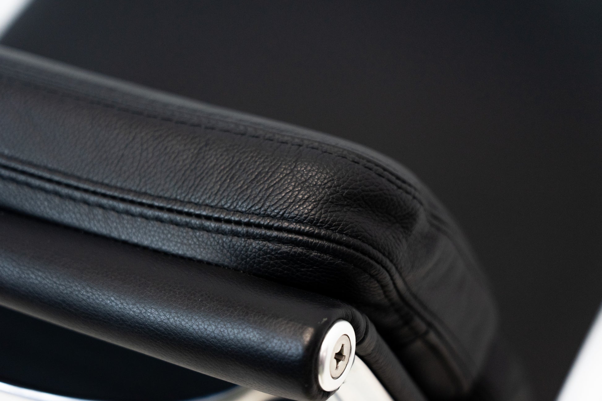 Der Stuhl ist sehr gut erhalten und sehr angenehm zum Sitzen. Das Leder ist fast neuwertig. Das Gestell hat geringe Gebrauchsspuren in Form von Kratzern und Abschürfungen. Der Sitzkomfort ist nach wie vor super und der Stuhl ist drehbar. Der Neupreis bei Vitra für die Variante in Leder mit poliertem Gestell liegt bei 3280 Franken pro Stuhl. Dieser Klassiker wurde von Ray Eames und Charles Eames entworfen und wird von Vitra produziert. Wir haben insgesamt 3 Stühle ab Lager verfügbar in jeweils ähnlichem Zustand. Der Preis bezieht sich auf einen Stuhl.