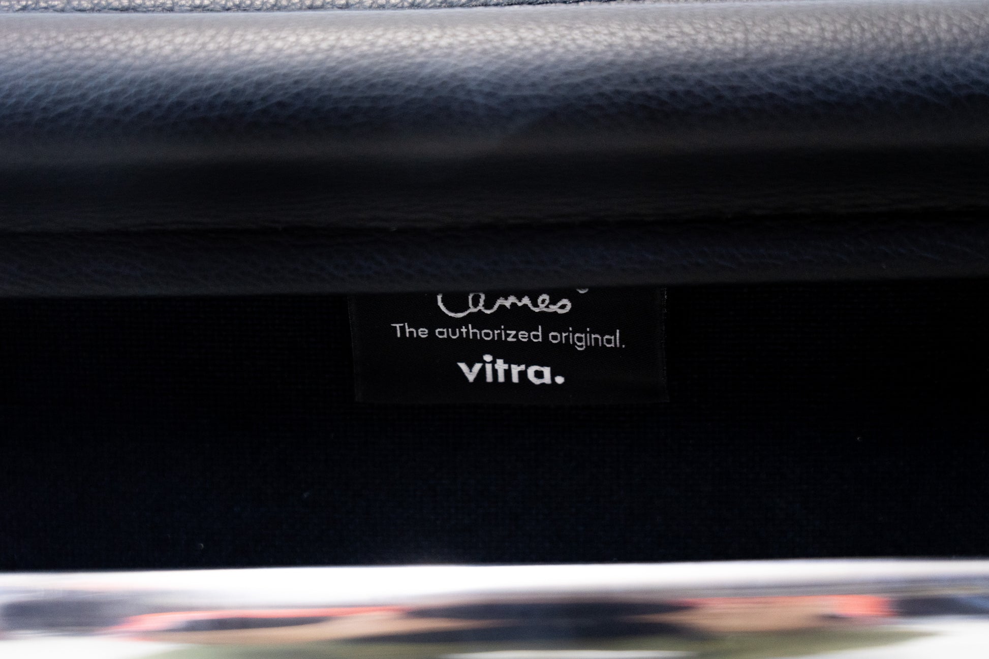 Der Stuhl ist sehr gut erhalten und sehr angenehm zum Sitzen. Das Leder ist fast neuwertig. Das Gestell hat geringe Gebrauchsspuren in Form von Kratzern und Abschürfungen. Der Sitzkomfort ist nach wie vor super und der Stuhl ist drehbar. Der Neupreis bei Vitra für die Variante in Leder mit poliertem Gestell liegt bei 3780 Franken pro Stuhl. Dieser Klassiker wurde von Ray Eames und Charles Eames entworfen und wird von Vitra produziert.