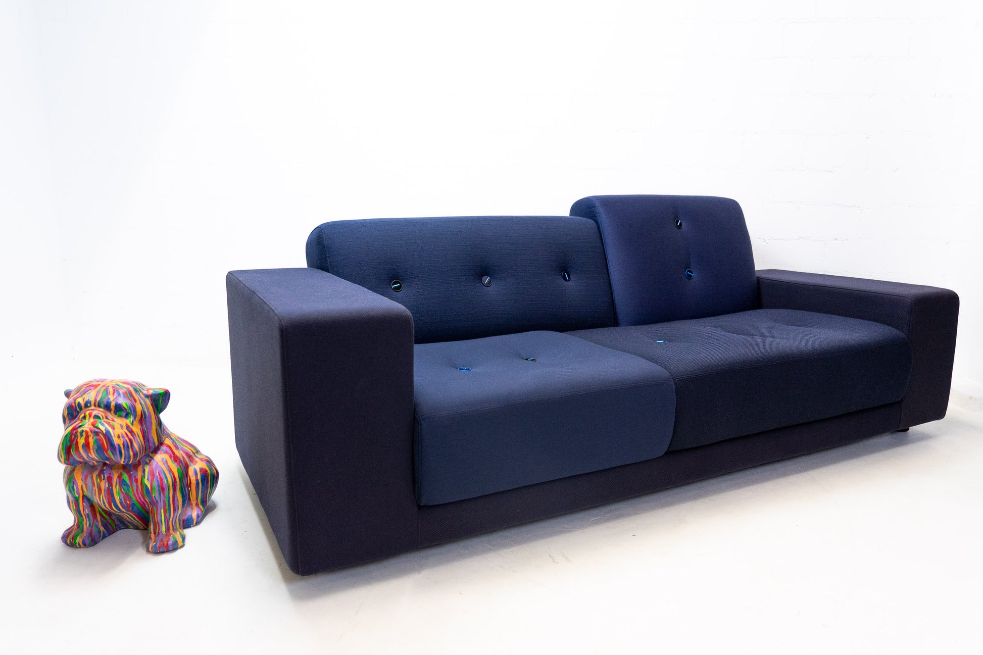 Das Sofa ist sehr gut erhalten. Es hat nur geringe Gebrauchsspuren. Das Sofa stammt aus einem Katzenhaushalt. Die Katzen haben das Sofa nicht beschädigt. Für Allergiker dennoch wichtig zu wissen. Der Sitzkomfort ist nach wie vor super. Dieser Klassiker wurde von Hella Jongerius entworfen. Diese Ausführung von Vitra hat einen derzeitigen Neupreis von 6890 Franken.